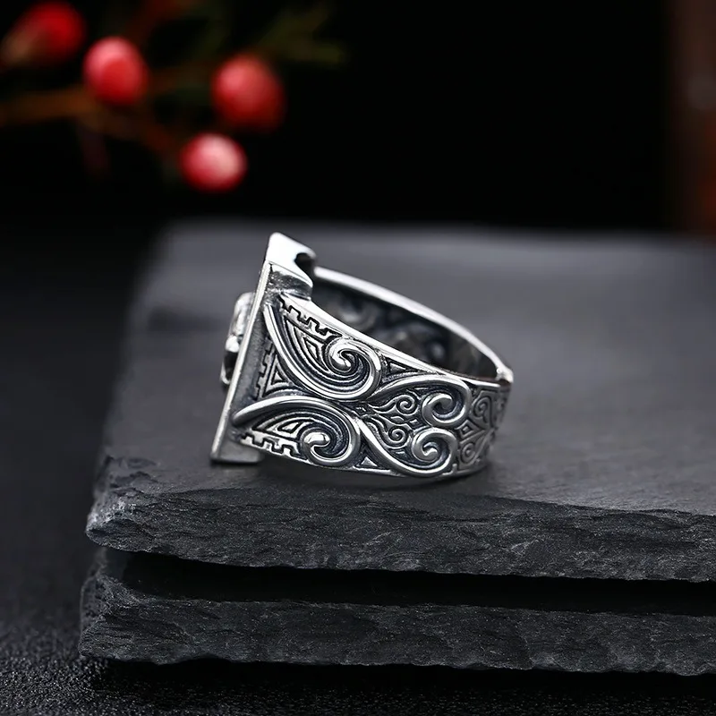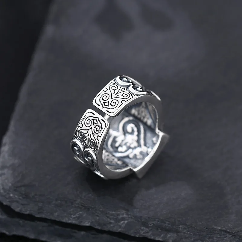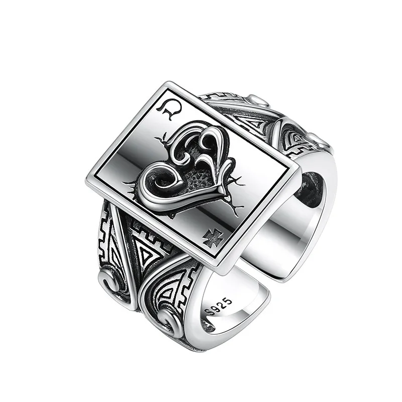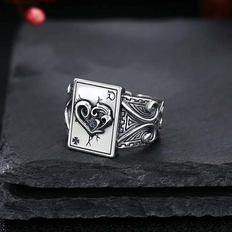 Wholesale Personality Playing Card Engraved Adjustable Sterling Silver Vintage Jewelry Ring for Men