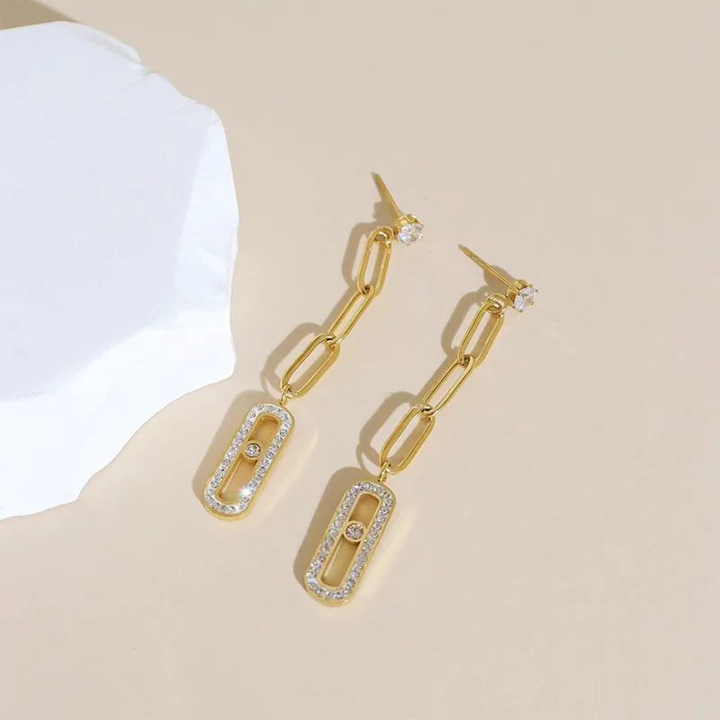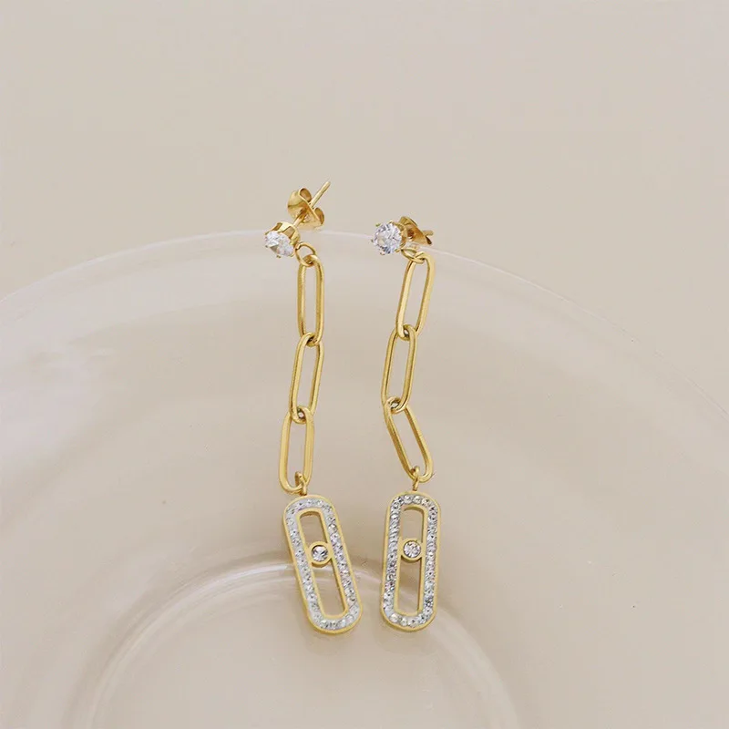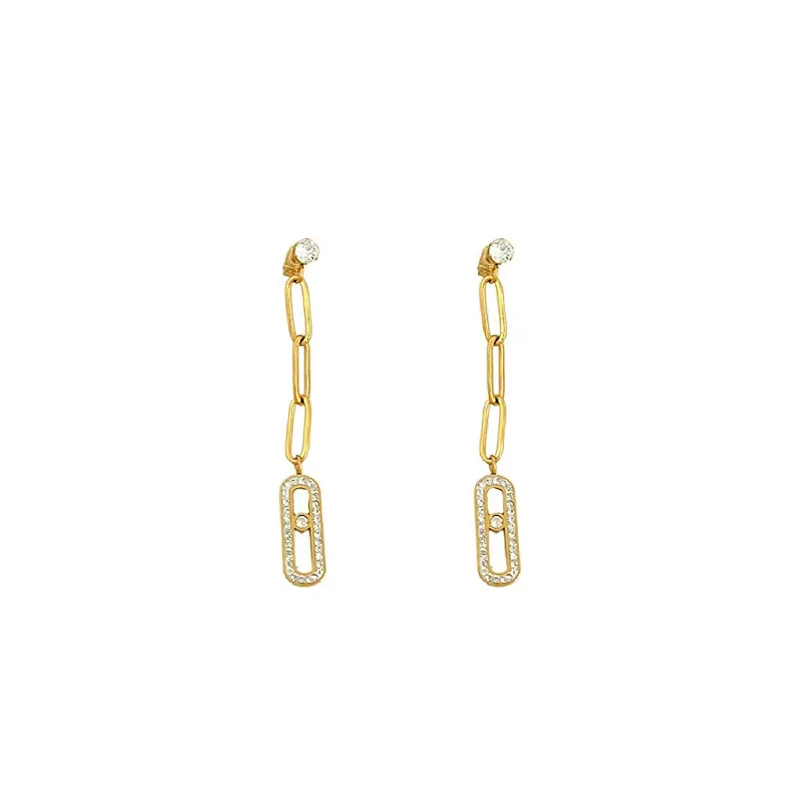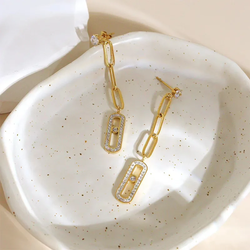 Rectangle Shape Drop Earrings Gold Plated Women Jewelry Stainless Steel Square Zircon Eye Link Chain Earring