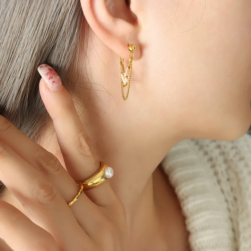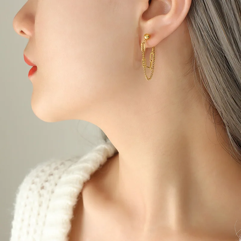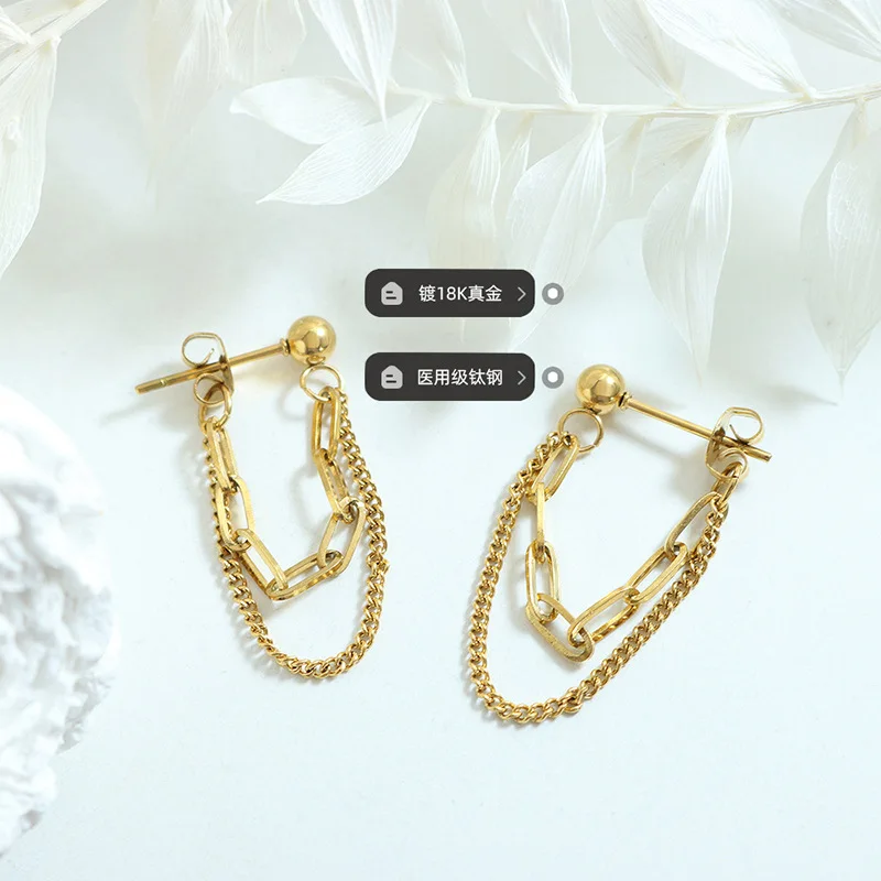 Wholesale Custom Fine Fashion Jewelry Stainless Steel 18K Gold Plated Double Layers Link Chain Earrings