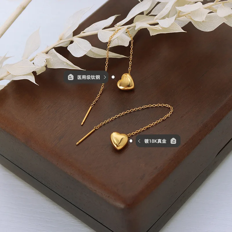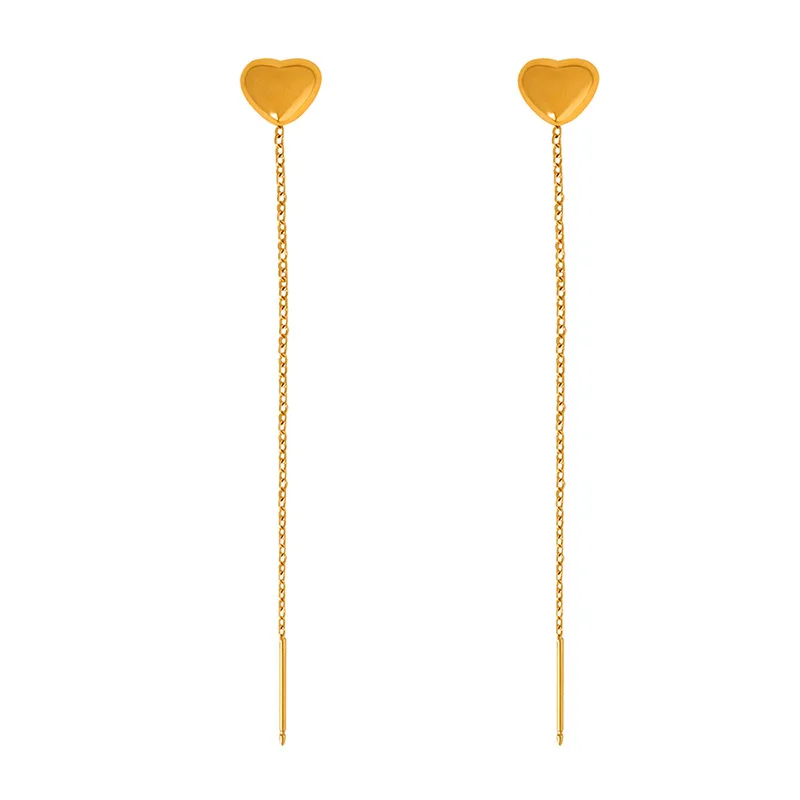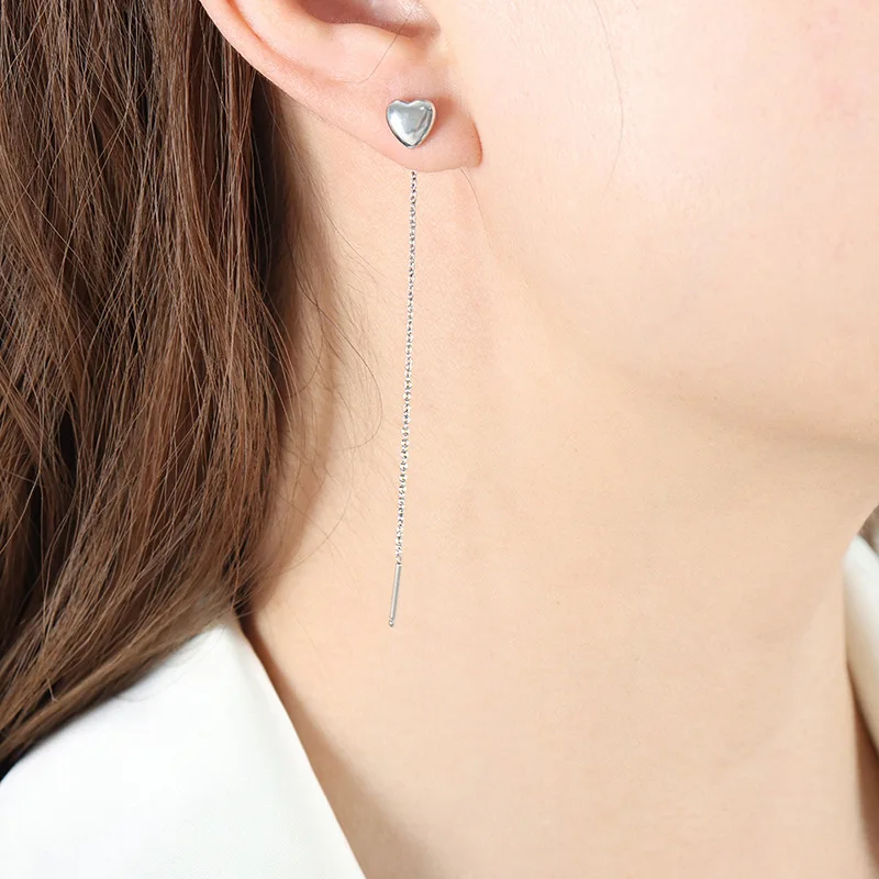 Trend Long Wire Tassel Drop Earring Heart Pendants Tassel Chain Ear Show Face Slim Hanging Earrings Women Jewelry
