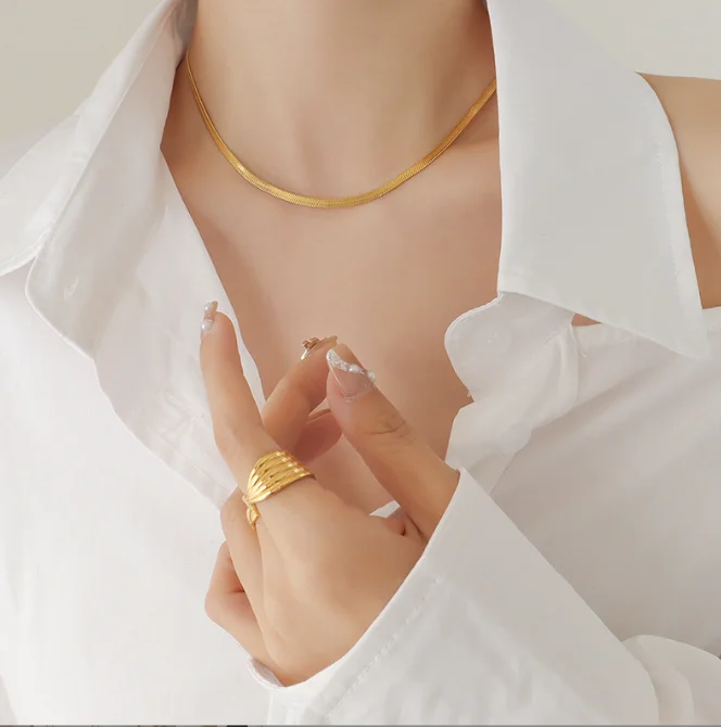 Blade Chain Personalized 18K Gold Snake Bone Chain Niche Design Spice Girl Necklace Bracelet Jewelry Set
