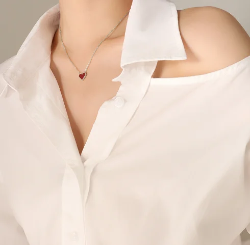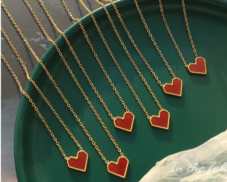 love Heart Collarbone Chain Acrylic Necklace Titanium Steel 18k Gold Fashion Peach Heart Accessories