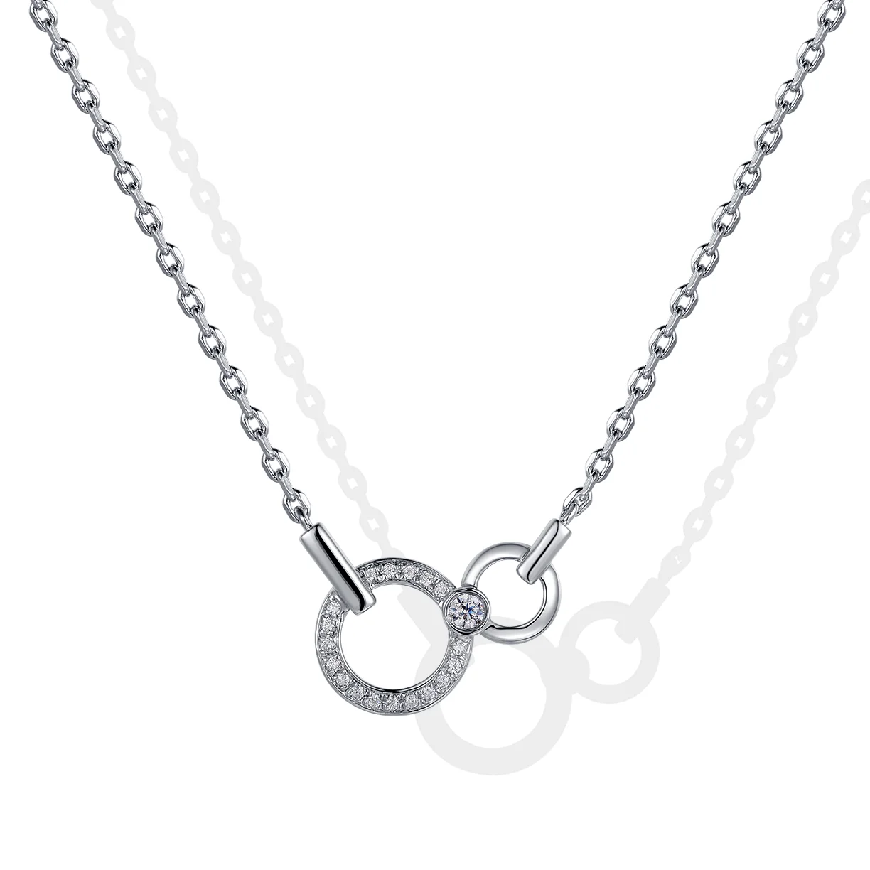Original Design Luxury 9k White Gold Interlinked Rings Circle Charm Necklace Diamond Jewelry