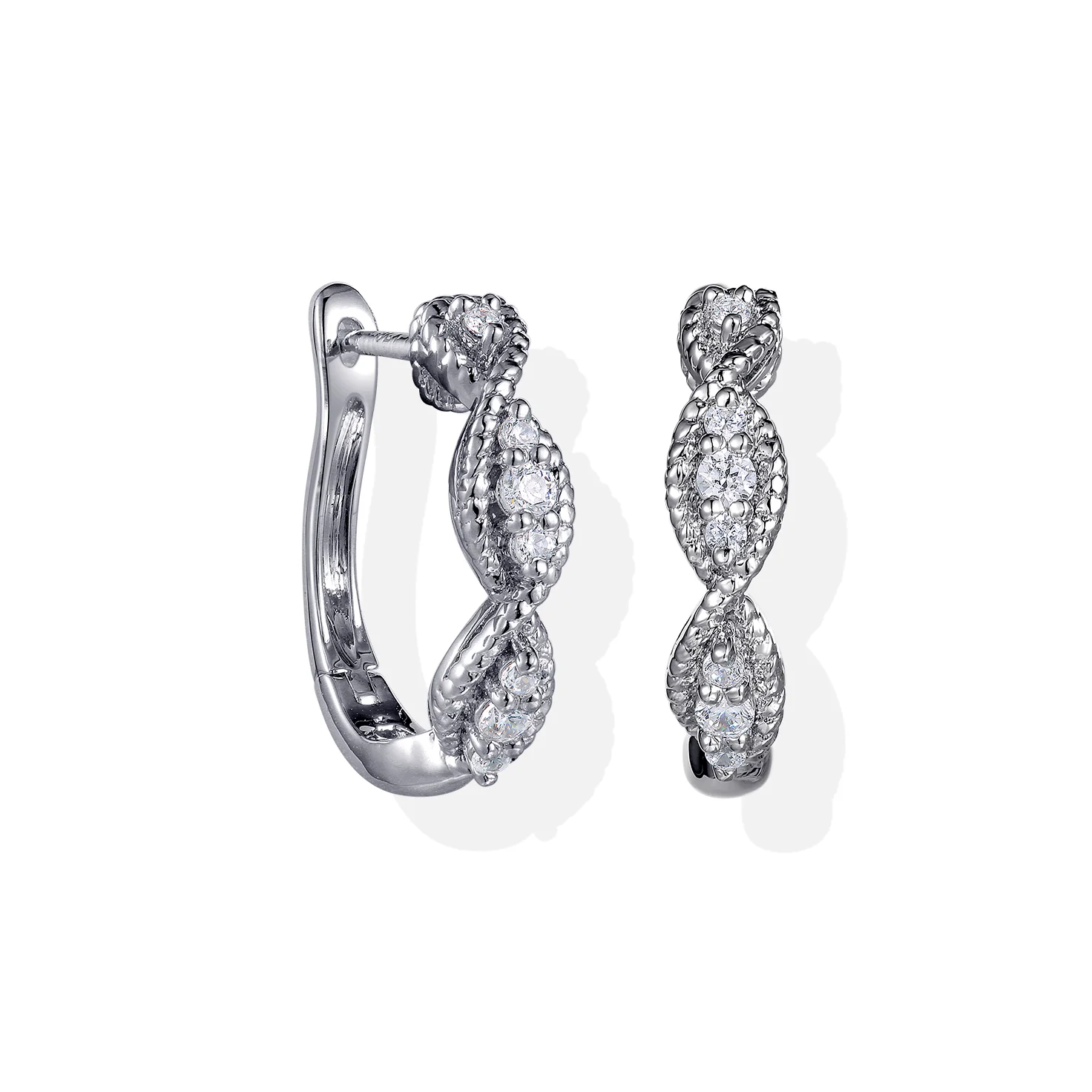 Original Design Fashion Diamond Twist Huggie Earrings 9K White Gold Earrings for Women Jewelry