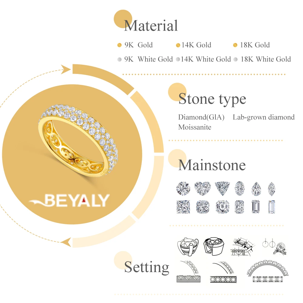 Trendy 9K 14K 18K Gold High Quality Fashion Diamond Inlaid Full Pave Eternity Ring Custom