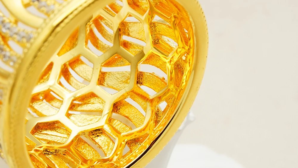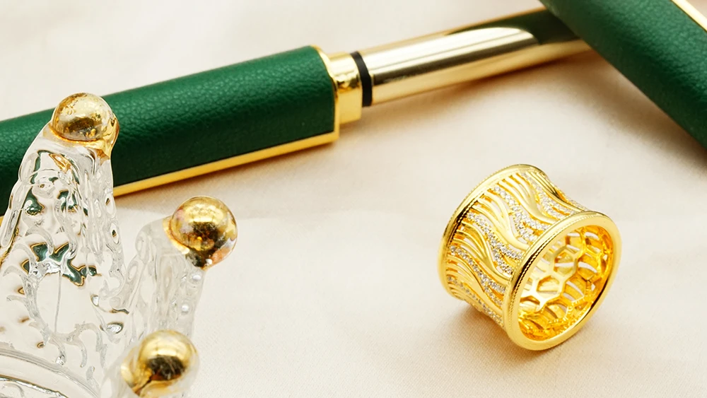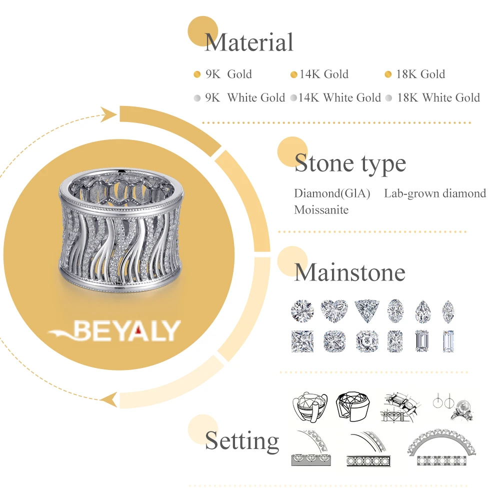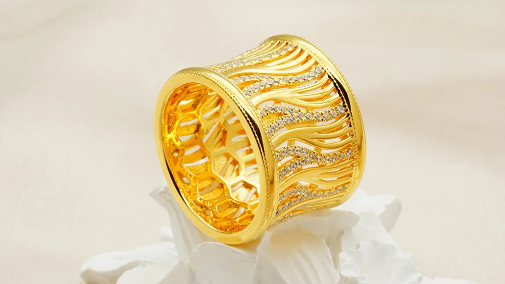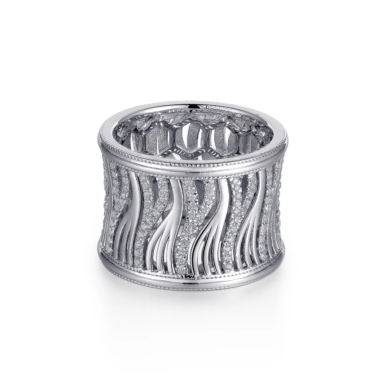 White Gold Diamond Inlaid Finger Ring Wave Line Design Wide Band Ring Women Elegant Jewelry