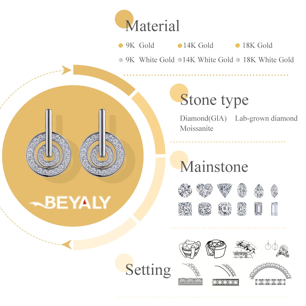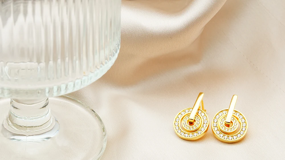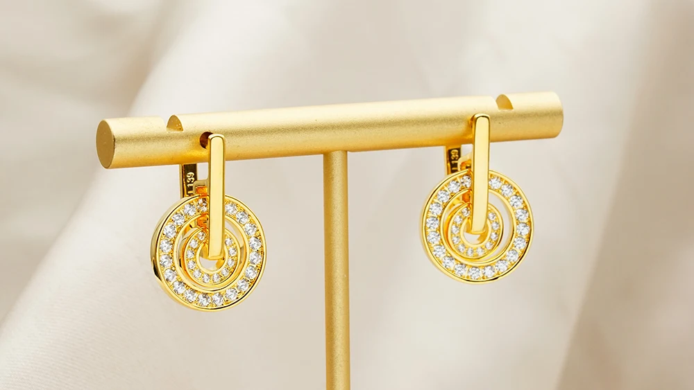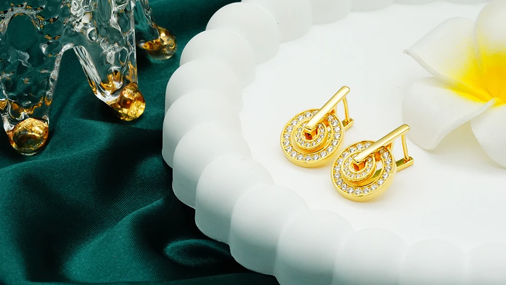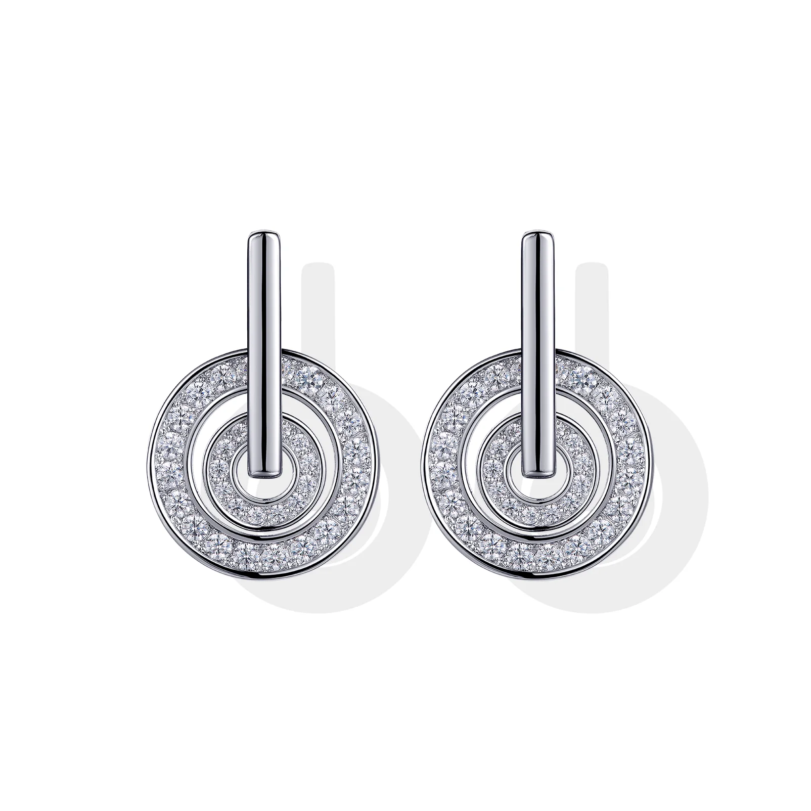 Fashion Double Circles Niche Design 9K White Gold Diamond Earrings for Women
