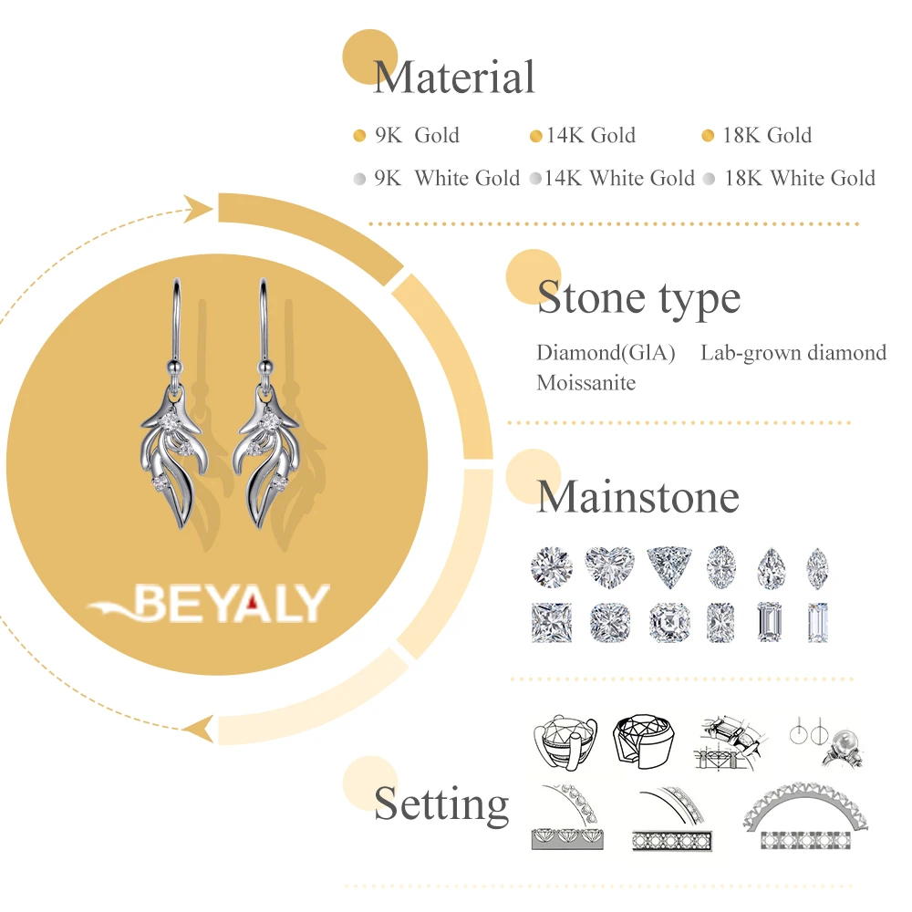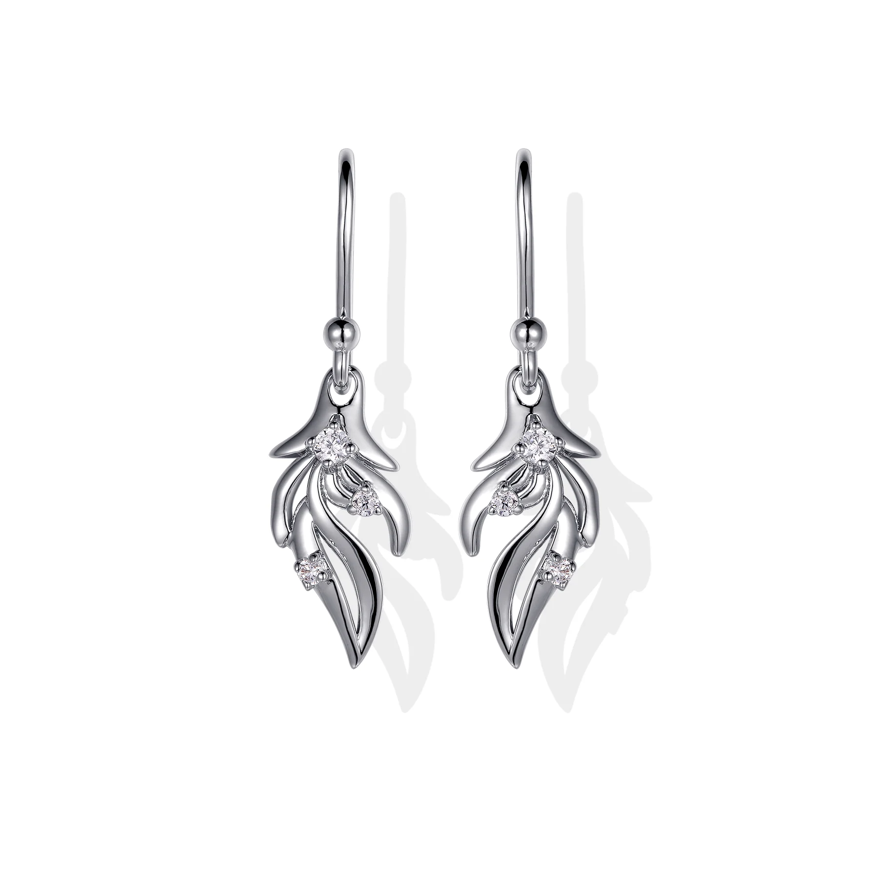 Original Trendy Leaf Shaped Drop Earrings 9k White Gold with Hollow Design Fashion Diamond Jewelry for Wedding or Gift