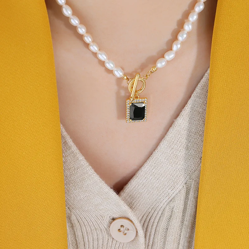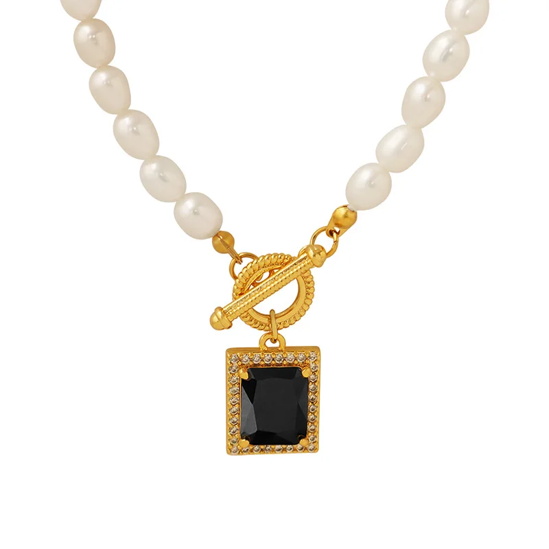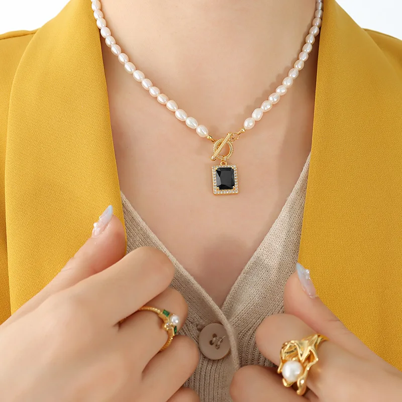 Hot Selling 18K Black Zircon Necklace for Women Freshwater Pearl for Weddings Fashionable Stainless Steel Jewelry