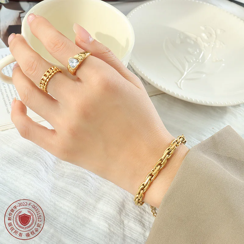 Elegant Simple 18K Gold Plated Stainless Steel Chain Bracelet Chunky for Women-Trendy Charm Bracelets Perfect Gift