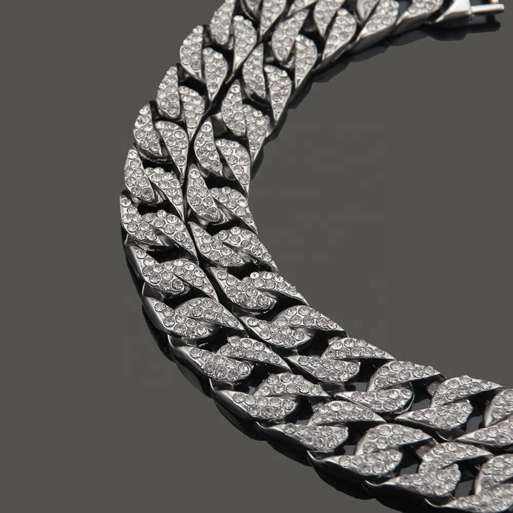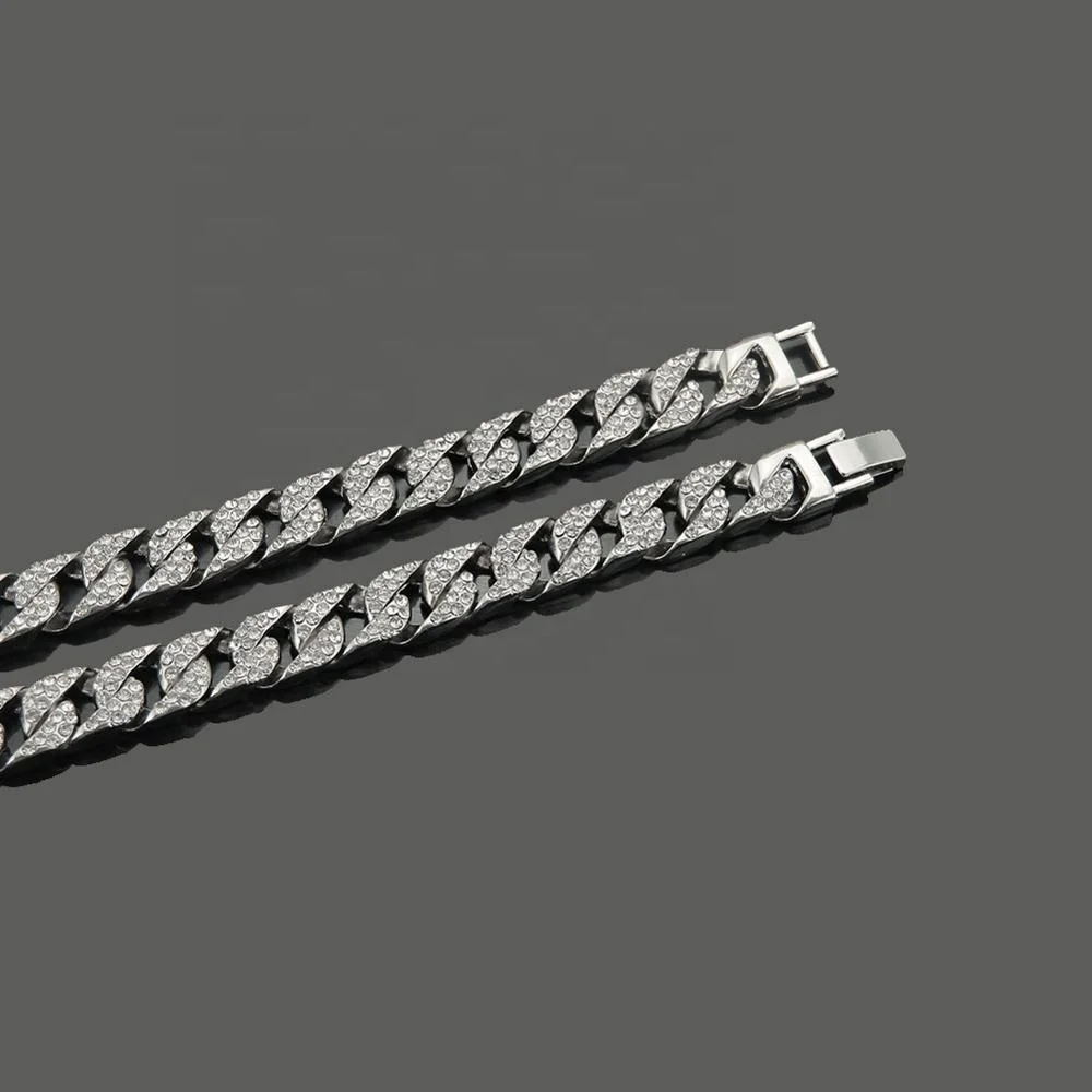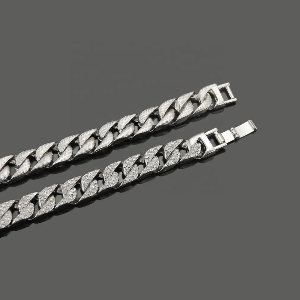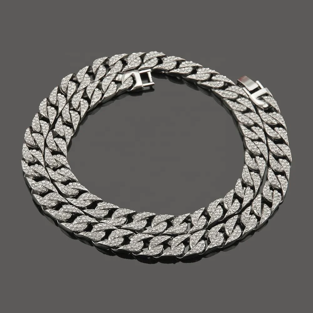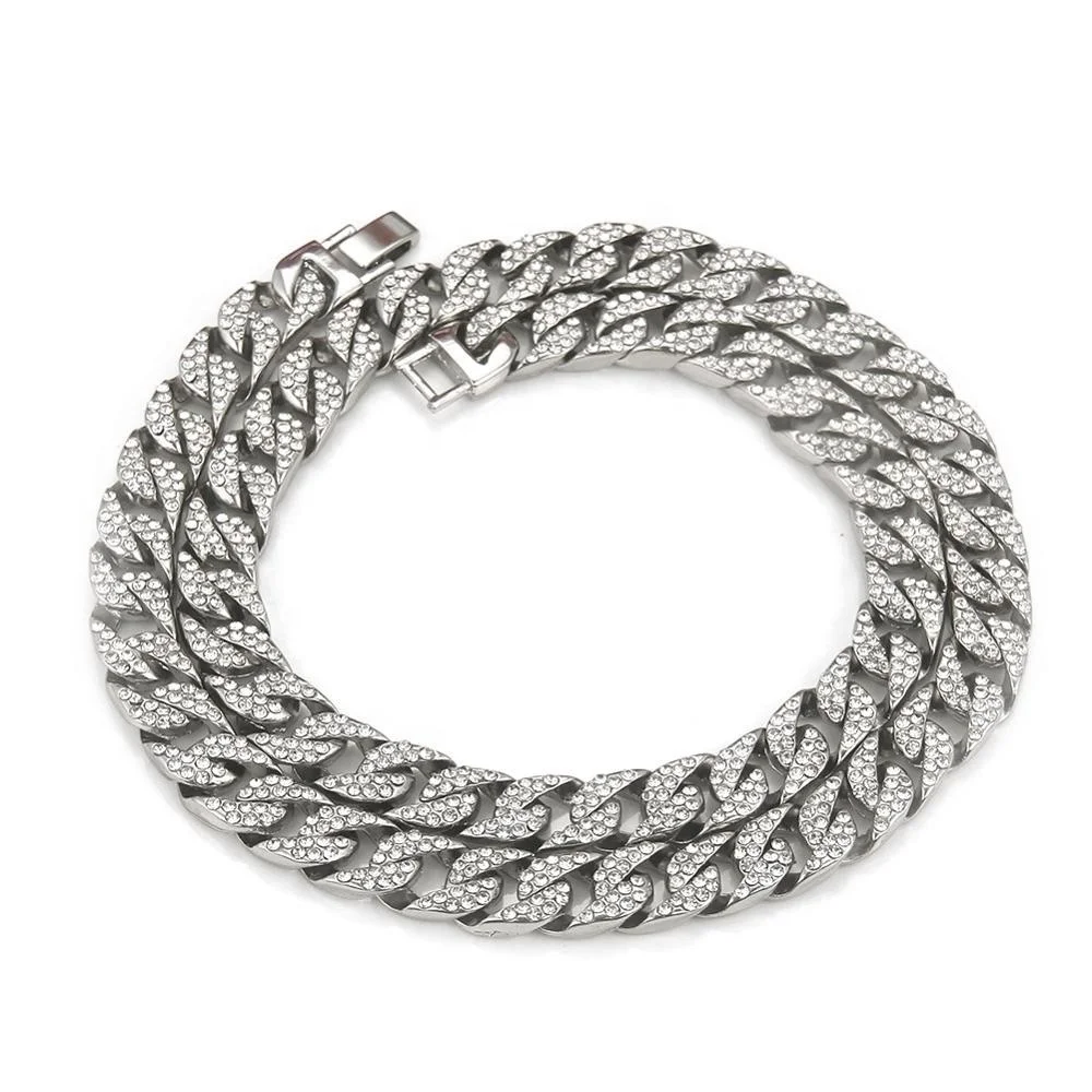 Hot Selling Unisex Silver Plated Hip Hop Necklace Zinc Alloy Strand Chain with Zircon Gemstone for Parties