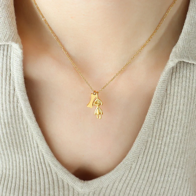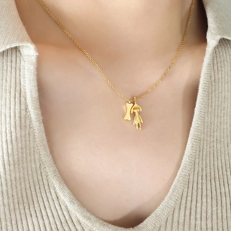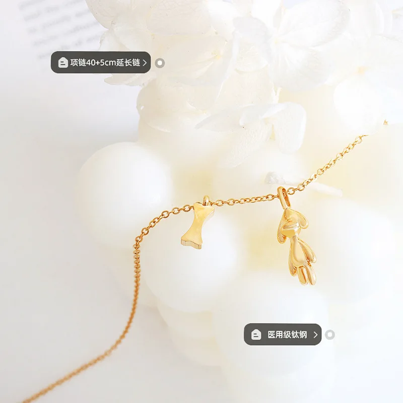 Stainless Steel Animal Puppy Dog Bone Pendant Necklace Collarbone Chain Hip Hop Style for Gift Cute Personality Jewelry
