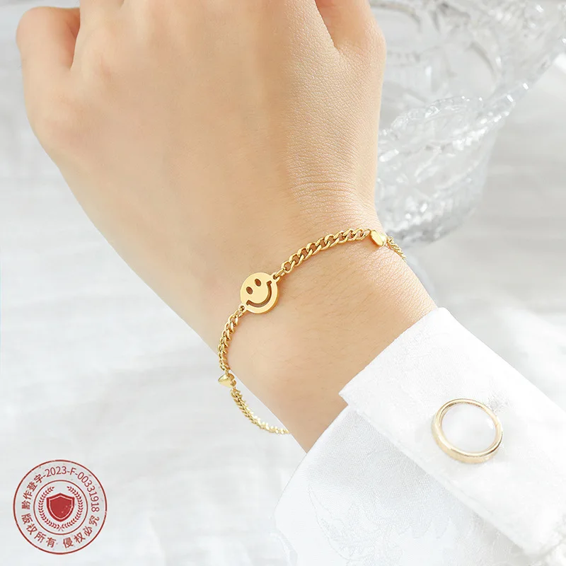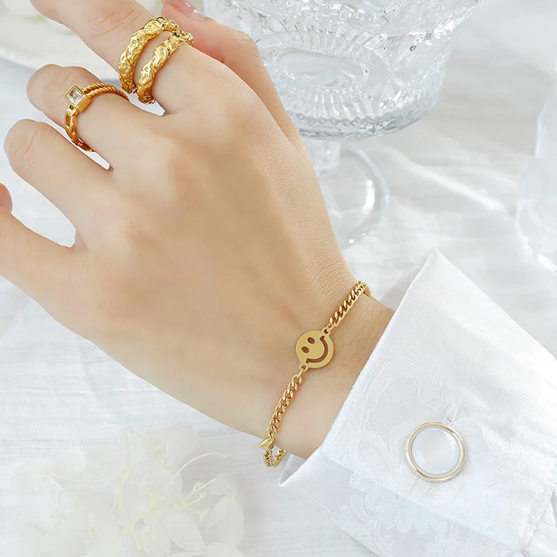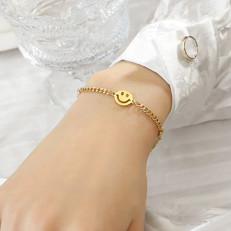Wholesale 316L Stainless Steel 18K Gold Plated Happy Face Bracelet Designer DIY Jewelry Making Charms Fashion Charm Bracelets