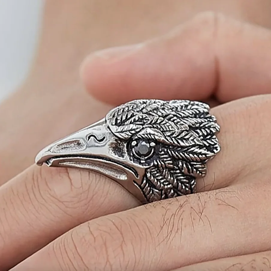 Crystal Eye Punk Style Men's Jewelry Ring Hip-hop Biker Boy's Cool Jewelry Stainless Steel Eagle Ring Red Vintage Charm Ring