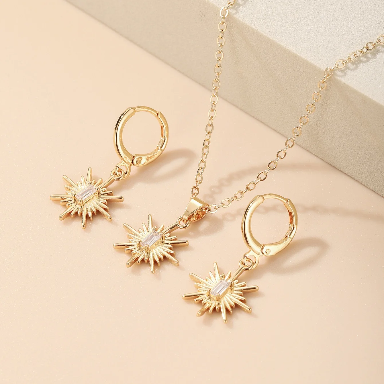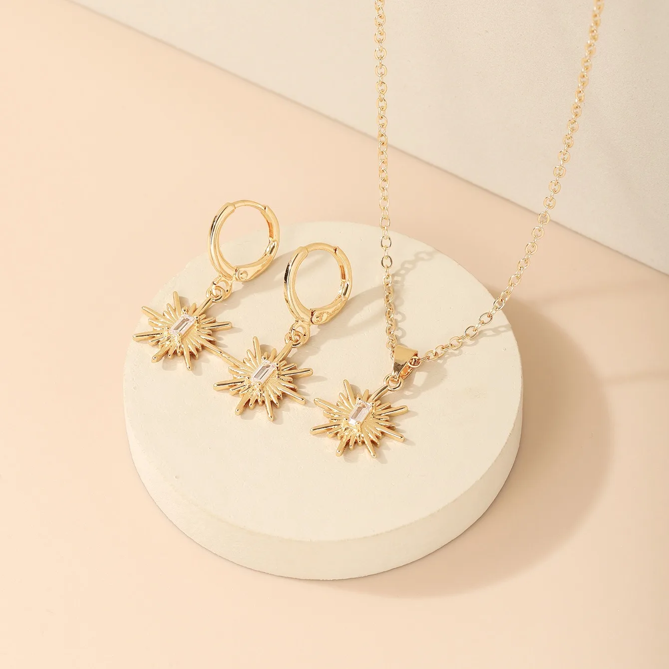 2021 New Arrival Gold Plated Jewelry Sets Retro Sun Fashion Pendant Earrings Necklace Set