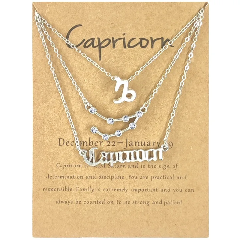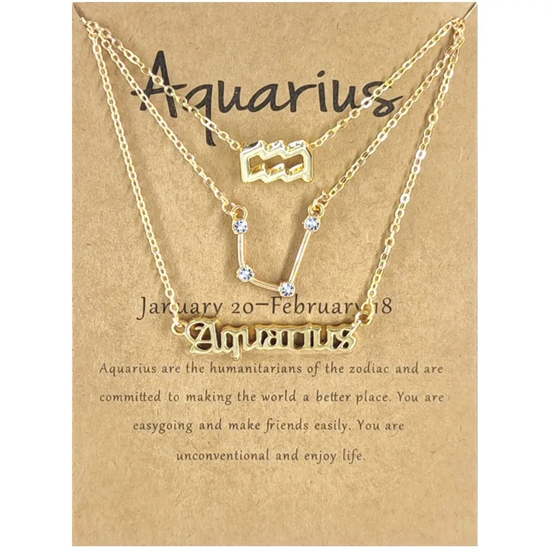 New 12 Twelve Constellation Symbols Zircon Inlay Three-layer Necklace Gold Plated Chain Initial Letter Pendant Necklace Gift