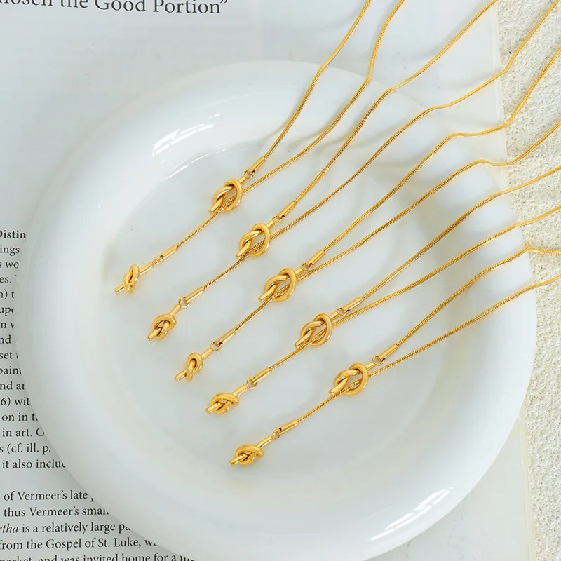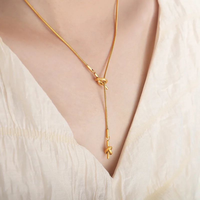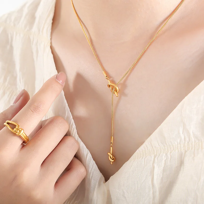 Adjustable 18K Gold Plated Stainless Steel Knot Necklace for Women Fashionable Waterproof Long Charm Necklace Trending Style