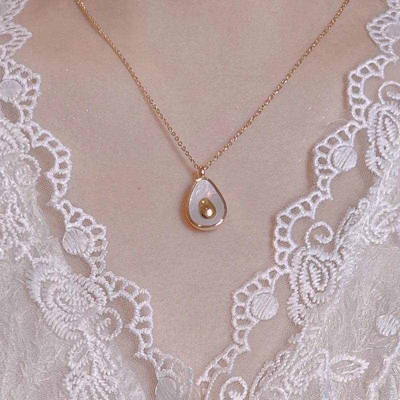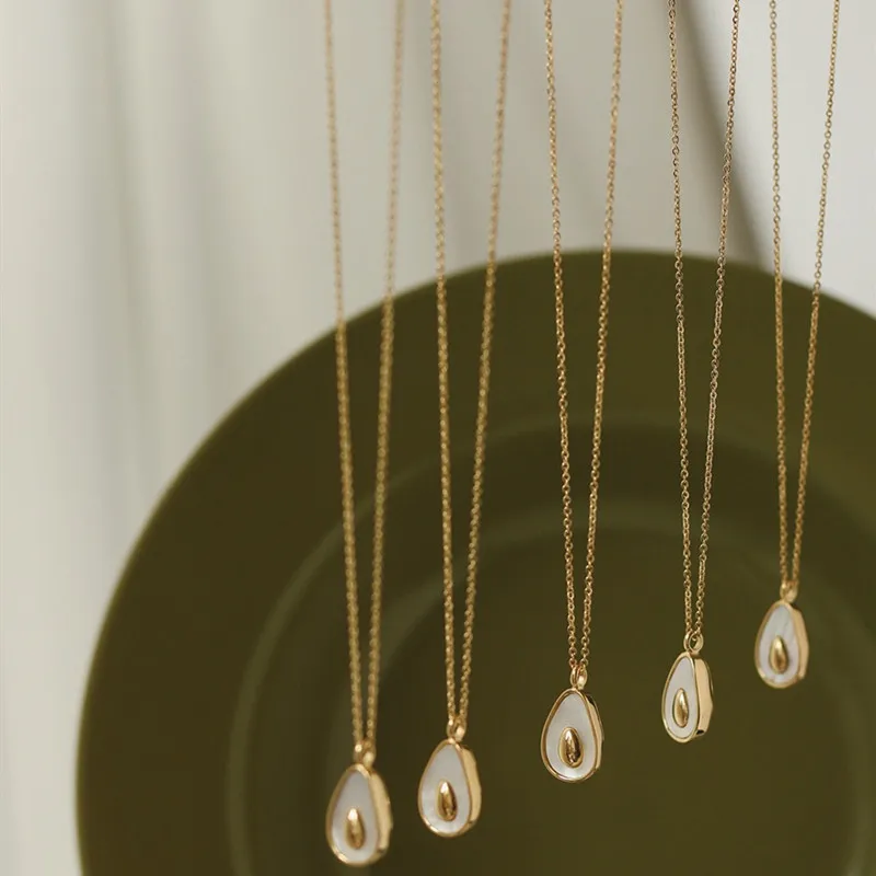 18K Gold Plated Stainless Steel Avocado Pendant Necklace with Trendy Link Chain for Women Perfect Party Jewelry Gift