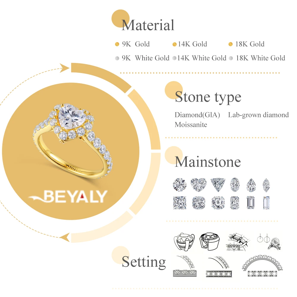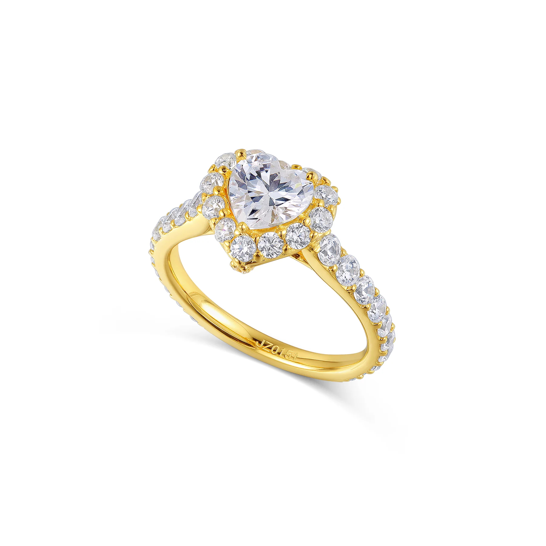 Wholesale Custom 18K Gold Heart Cut Gemstone Women's Rings Diamond-Inlaid Vintage Style Finger Bands for Weddings and Parties