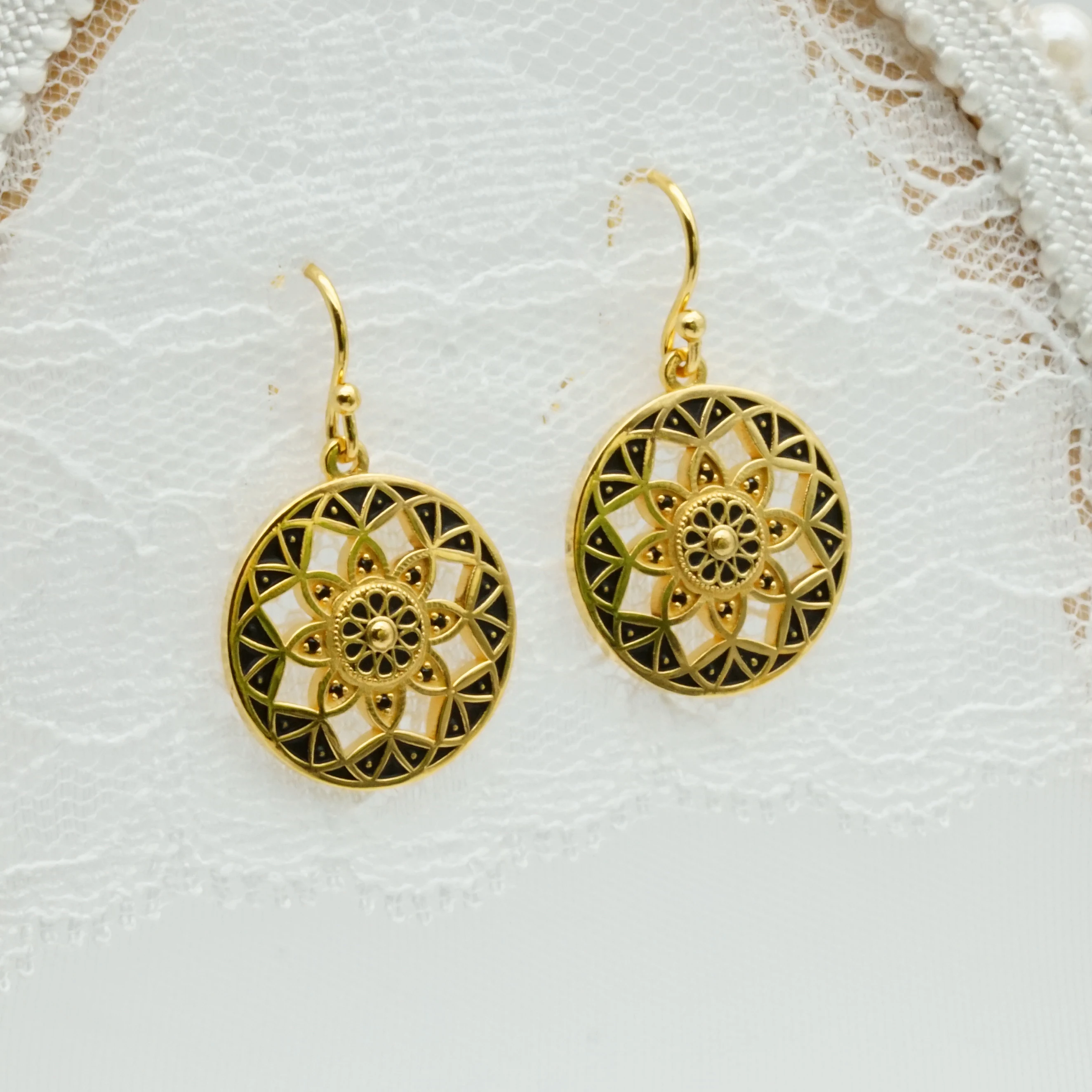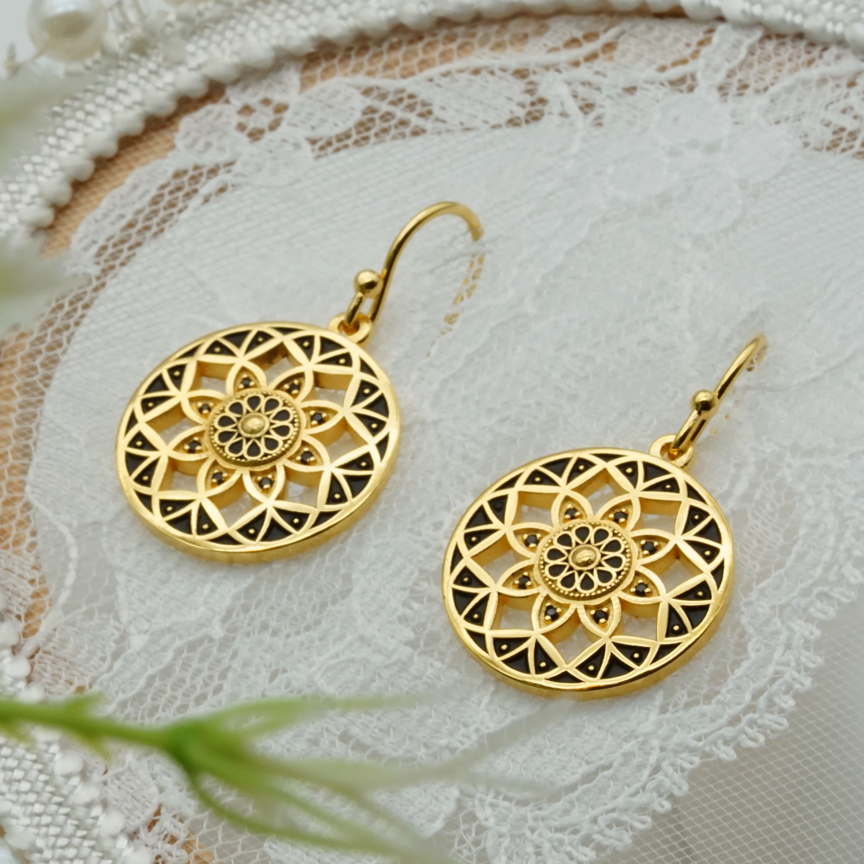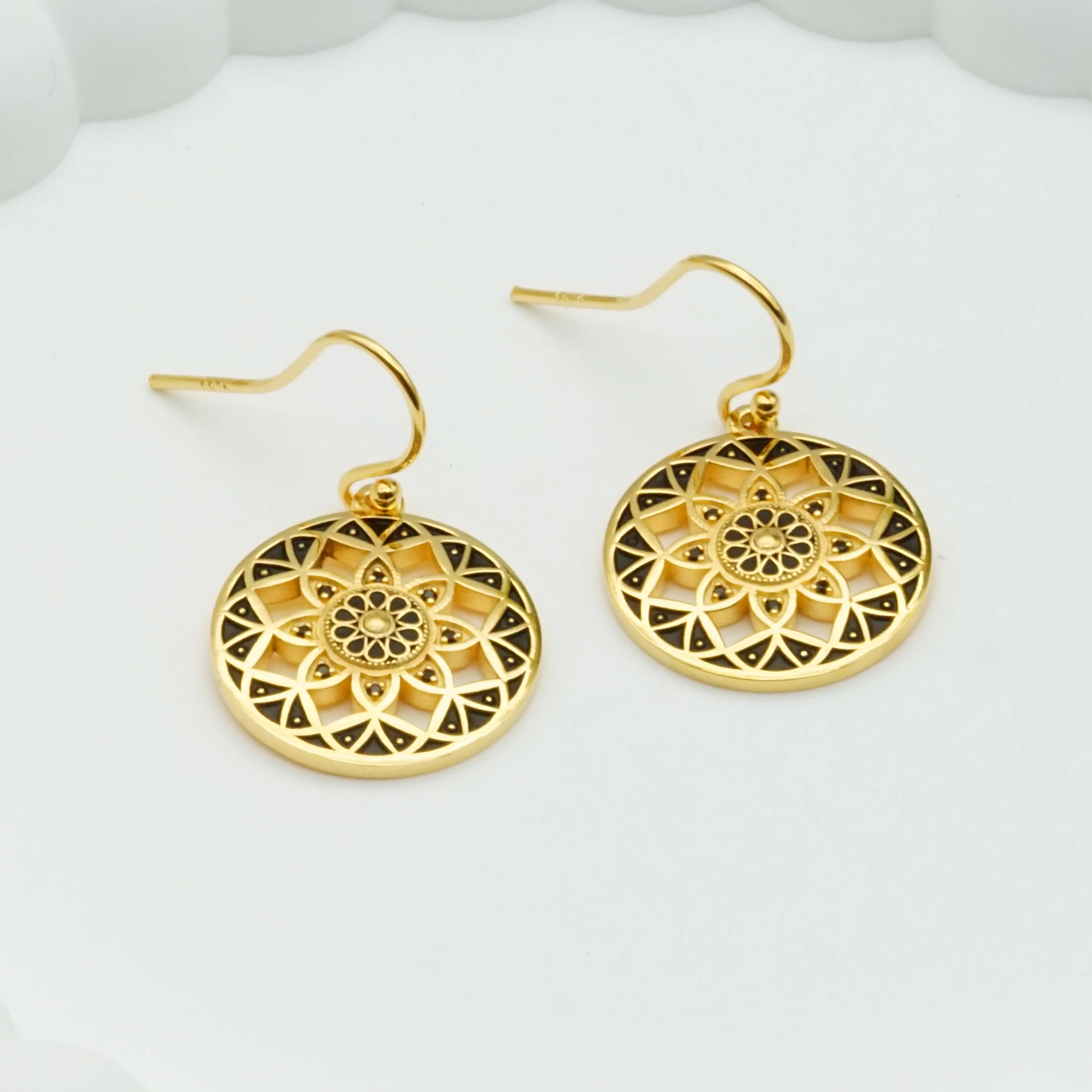 Original Design Ear Piercing Jewelry Gold/Rose Gold/Black Plated Mandala Flower of Life Stud Earrings for Women