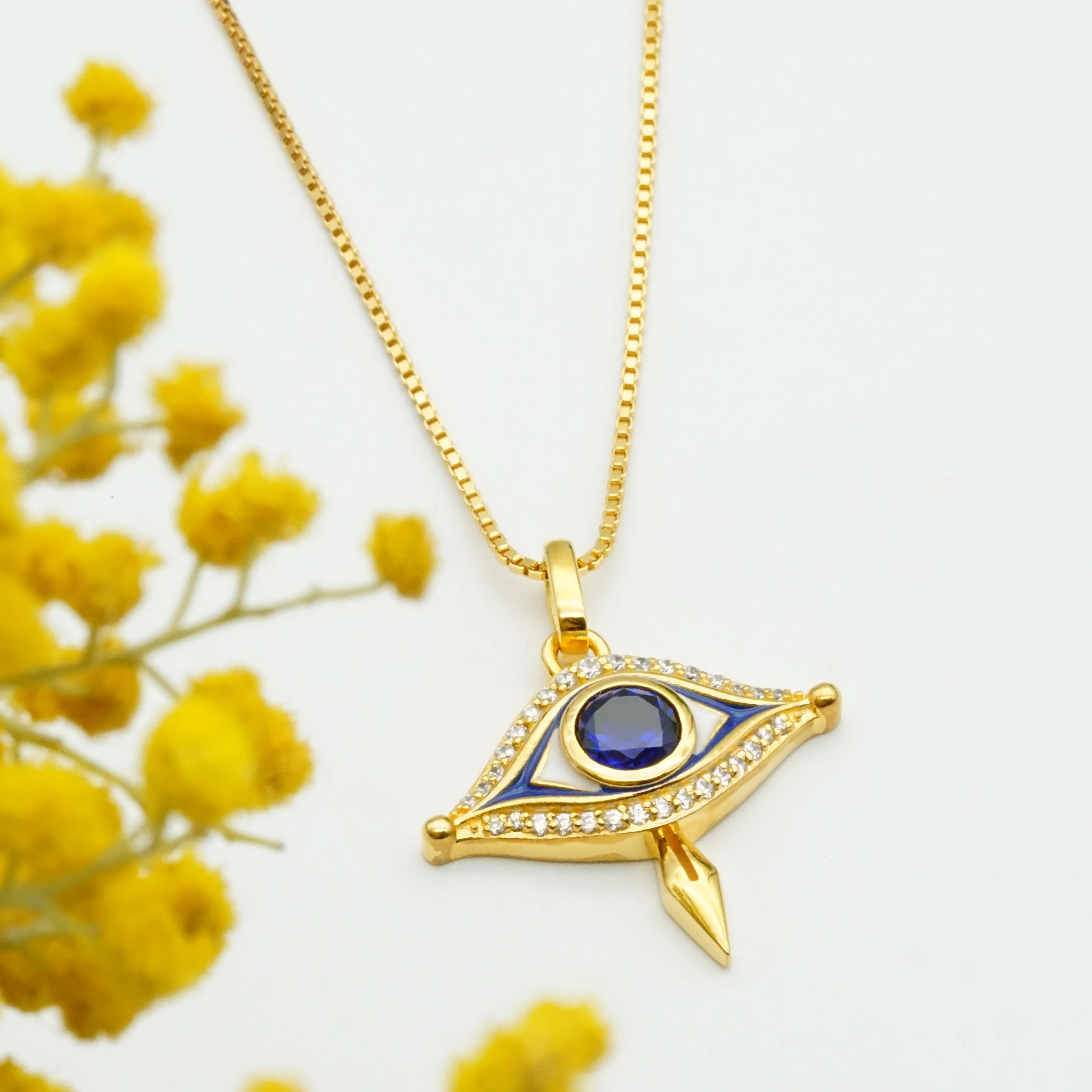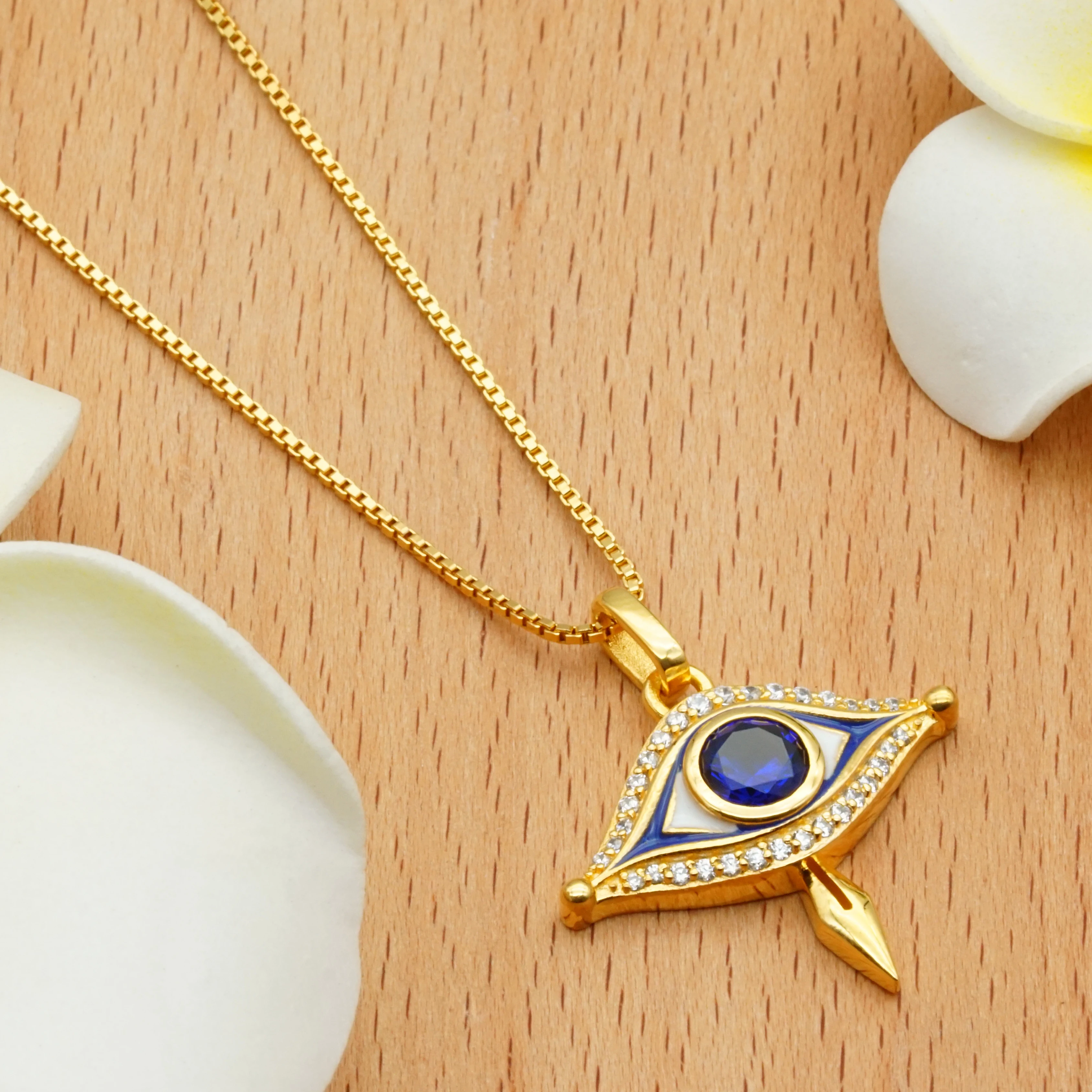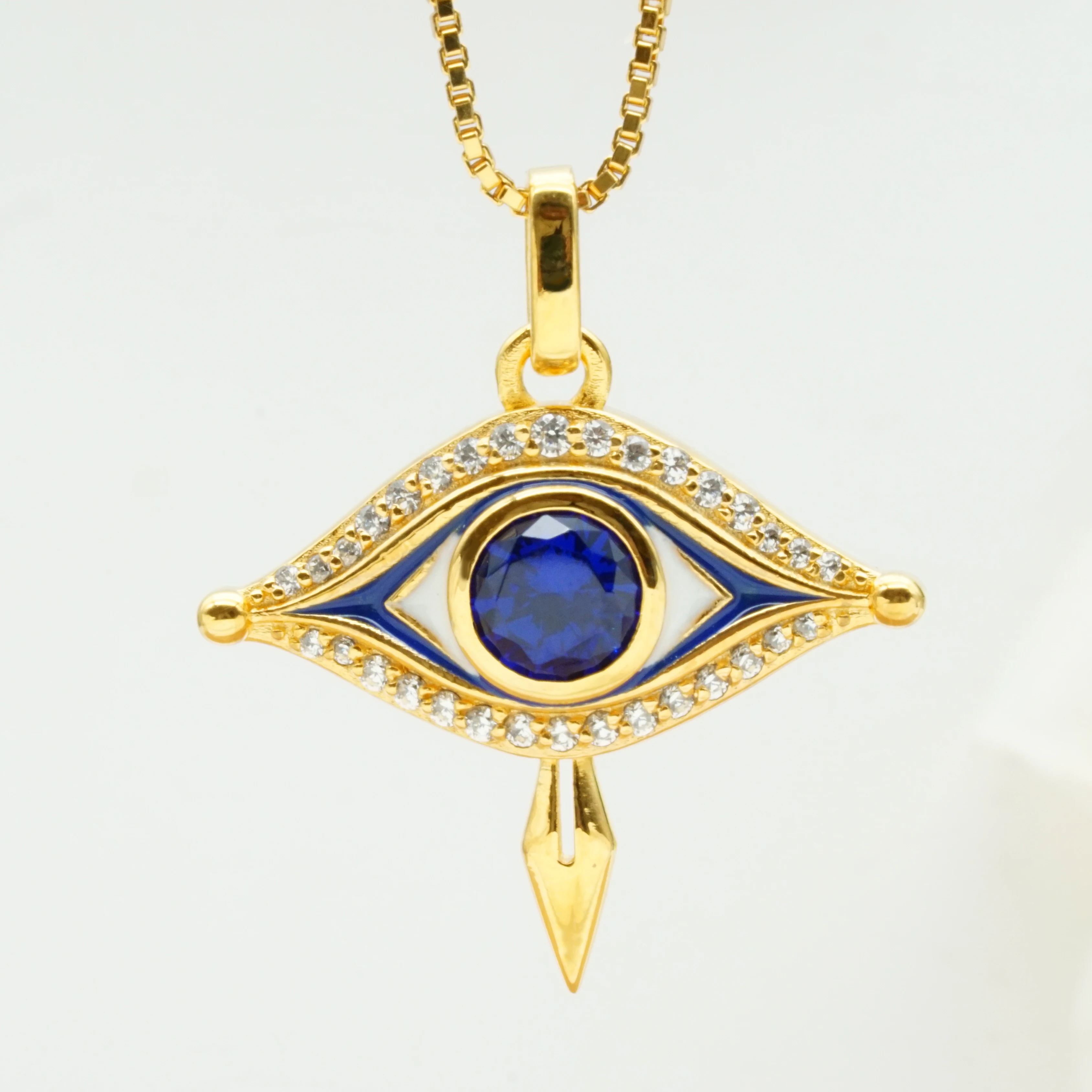 Original Design Women Jewelry 18k Gold Plating Truth of Eye Blue Zircon Inlay Charms Pendant