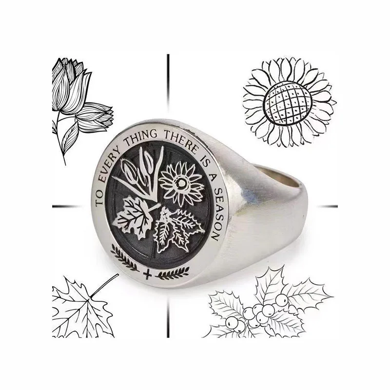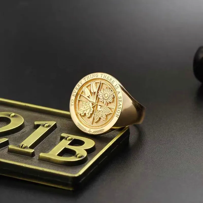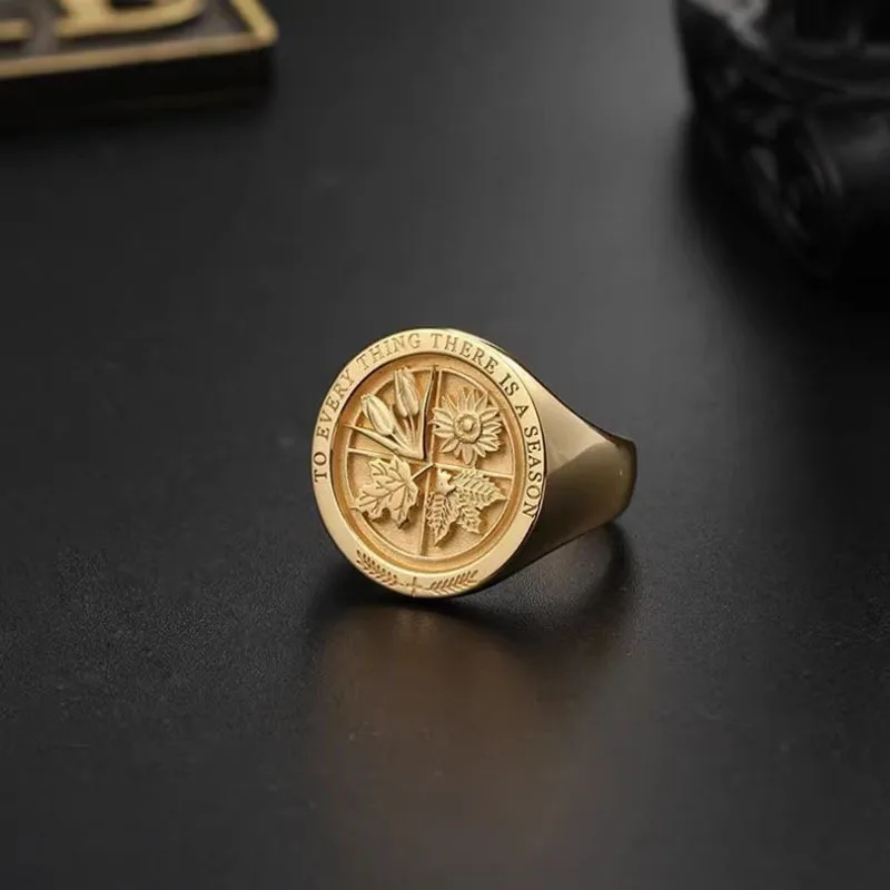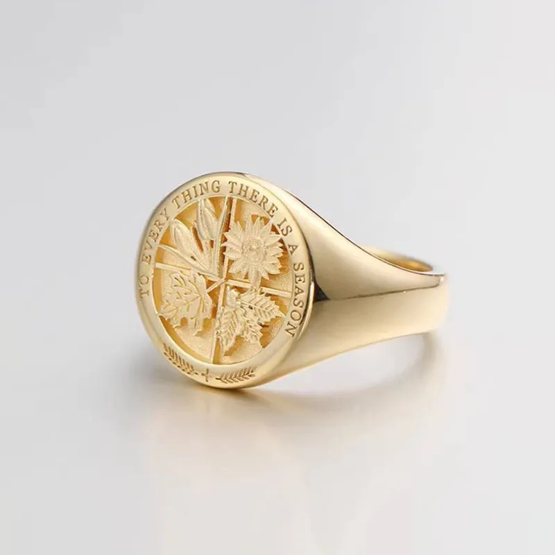 Fashion Design Men Signet Ring Customize Design Four Season Men Simple PVD 18K Gold Plating Stamped Stock Jewelry Ring