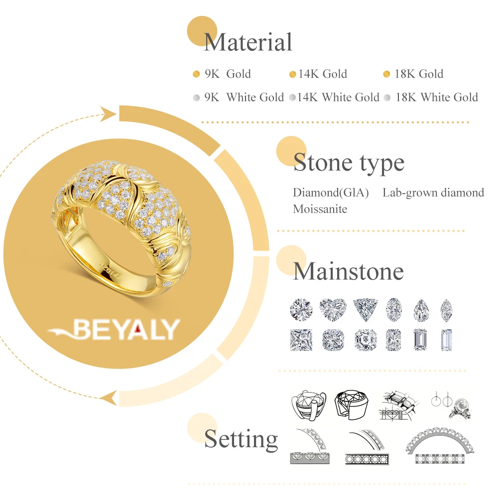 Original Design Diamond 9K 10K 14K Real Gold Fine Jewelry Engagement Wedding Ring for Women Man