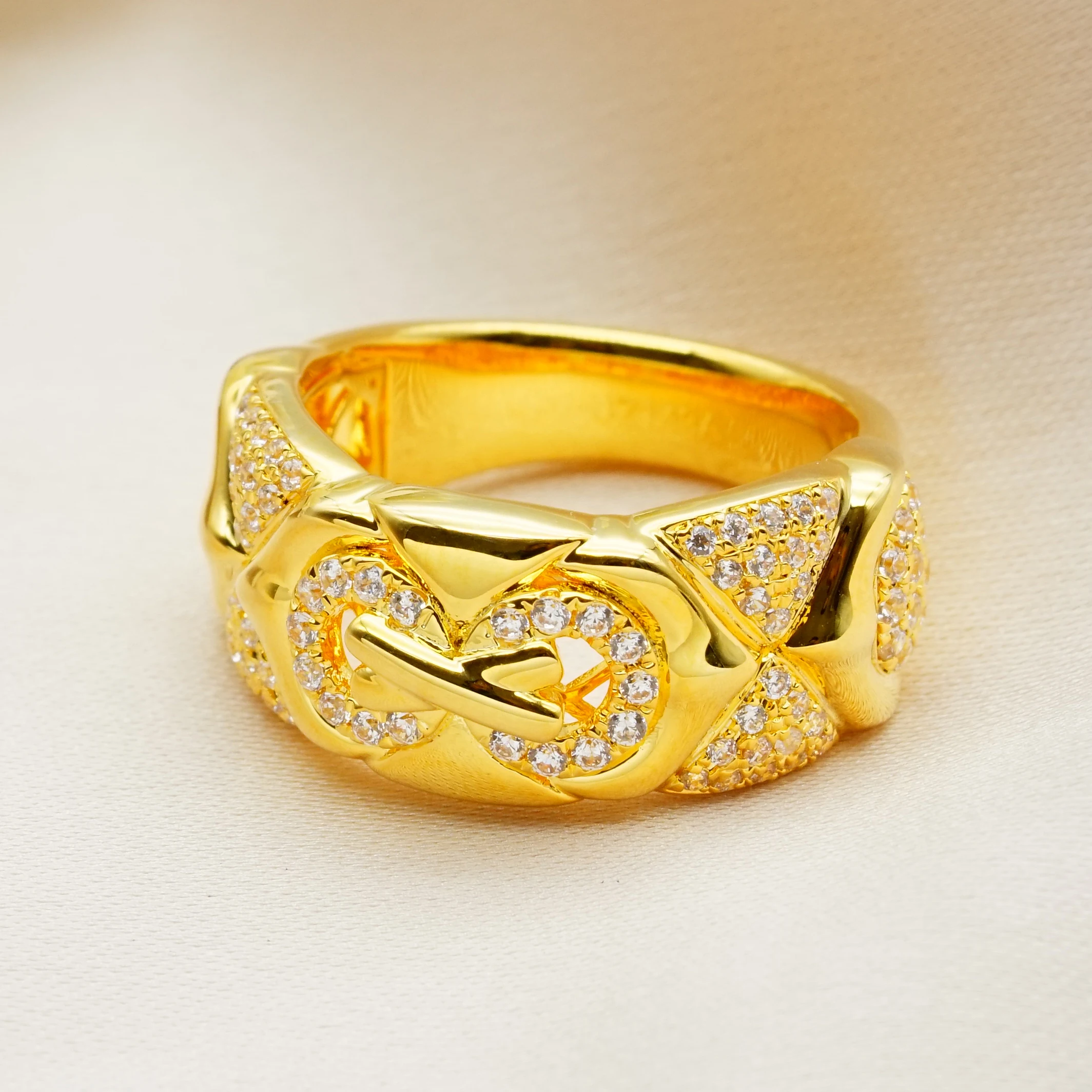 Original Design Gold Knot Ring With Diamond Inlaid Wide Band Engagement Ring Perfect Gift Jewelry Accessory Set