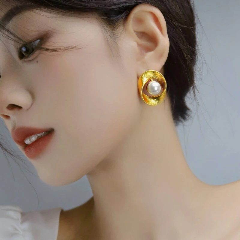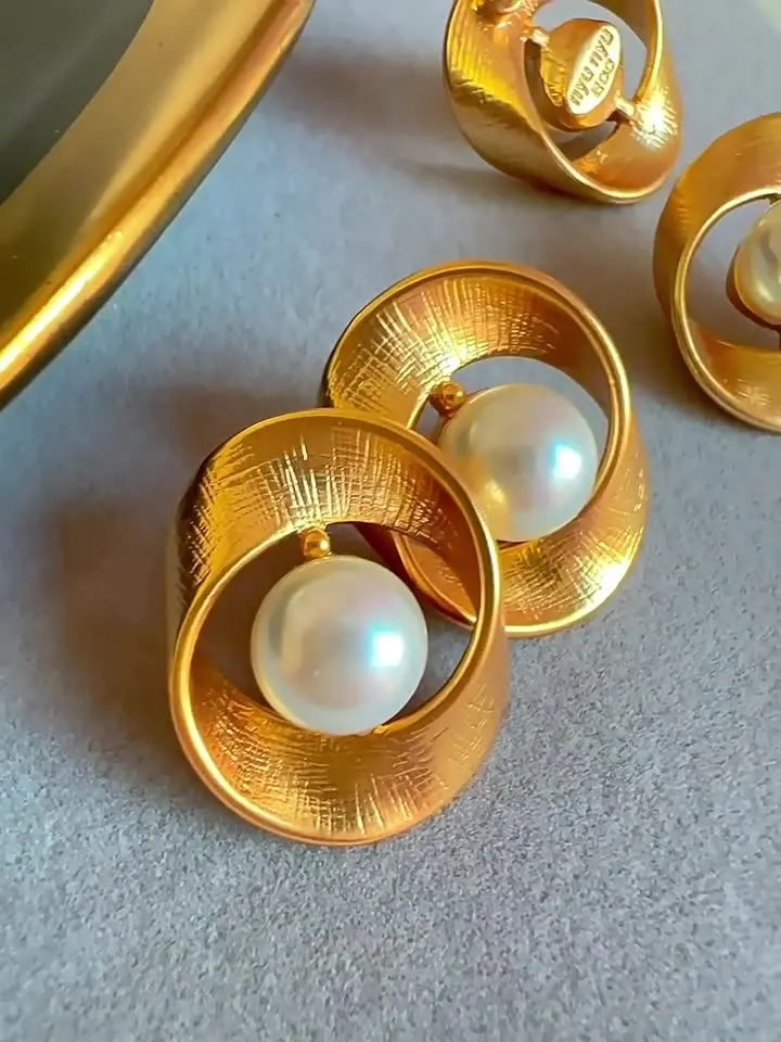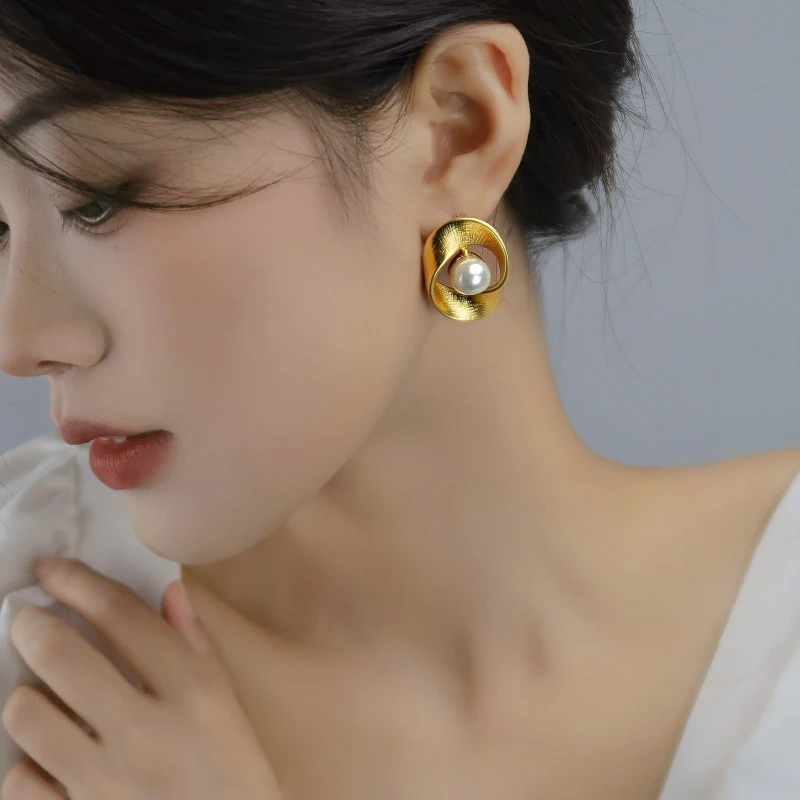 Vintage 925 Silver Needle Stud Earrings Circle Twisted Pattern Pearl Design