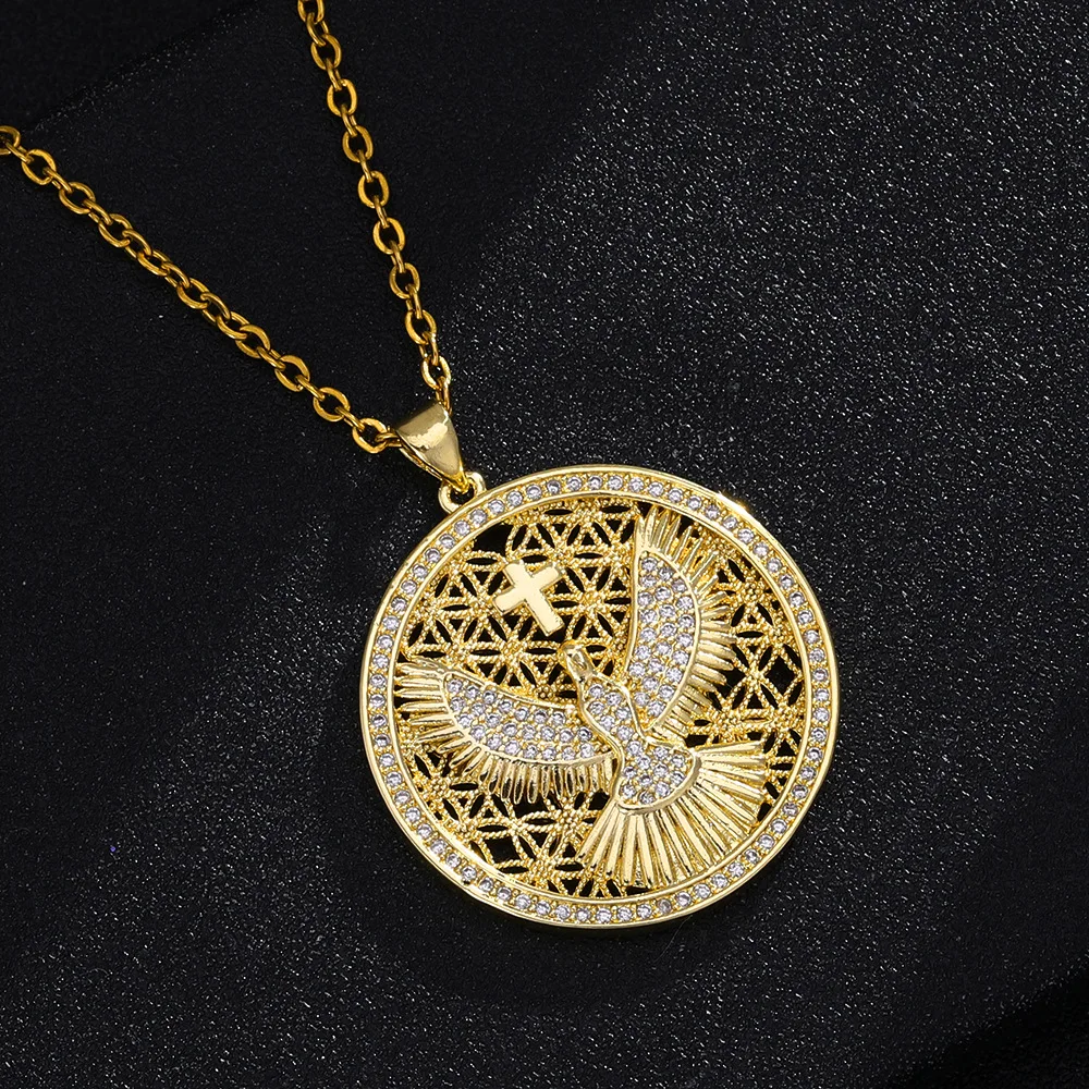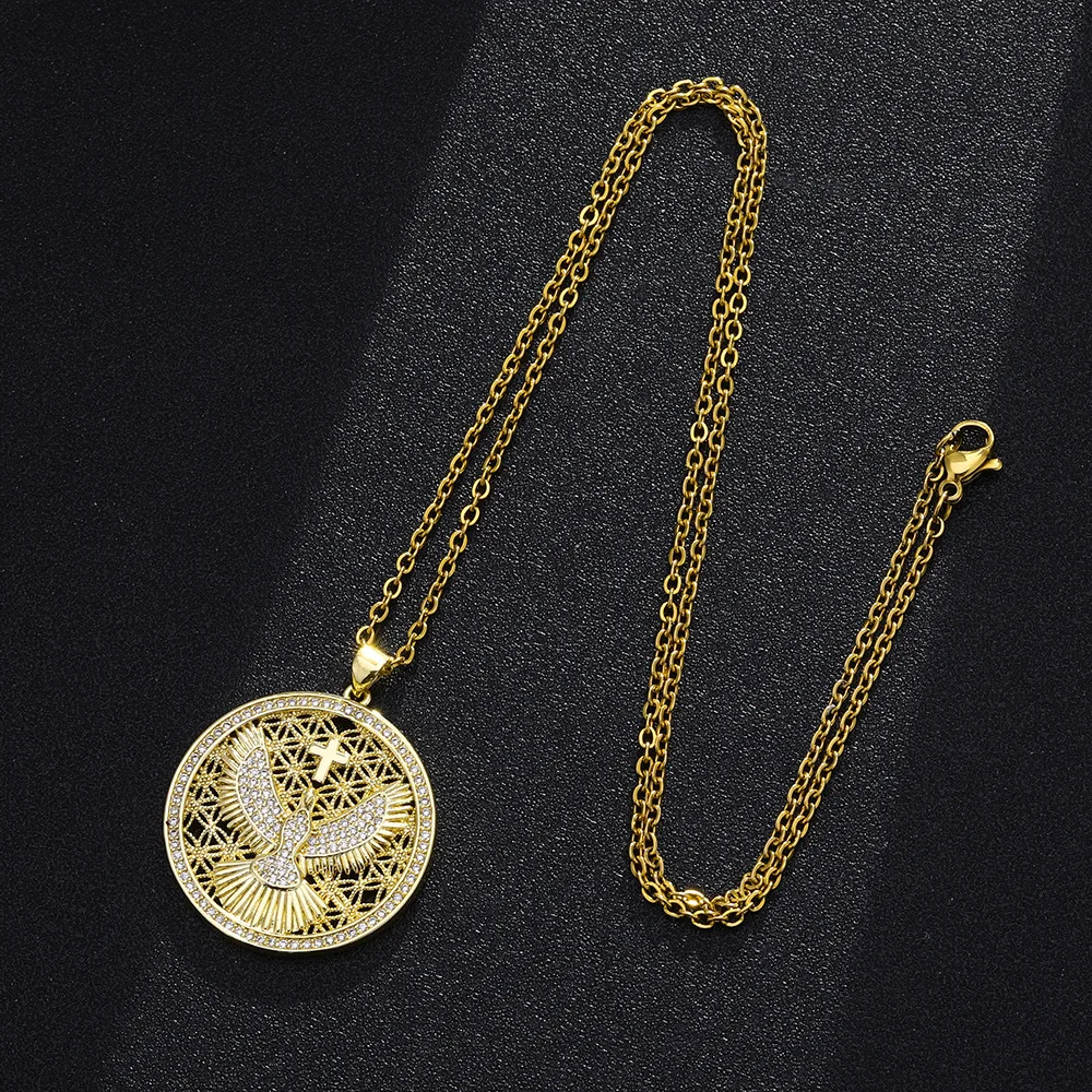 Best-selling Eagle Guardian Cross Pendant Necklace for Men and Women 18K Gold-Plated Jewelry Inlay with Zircon