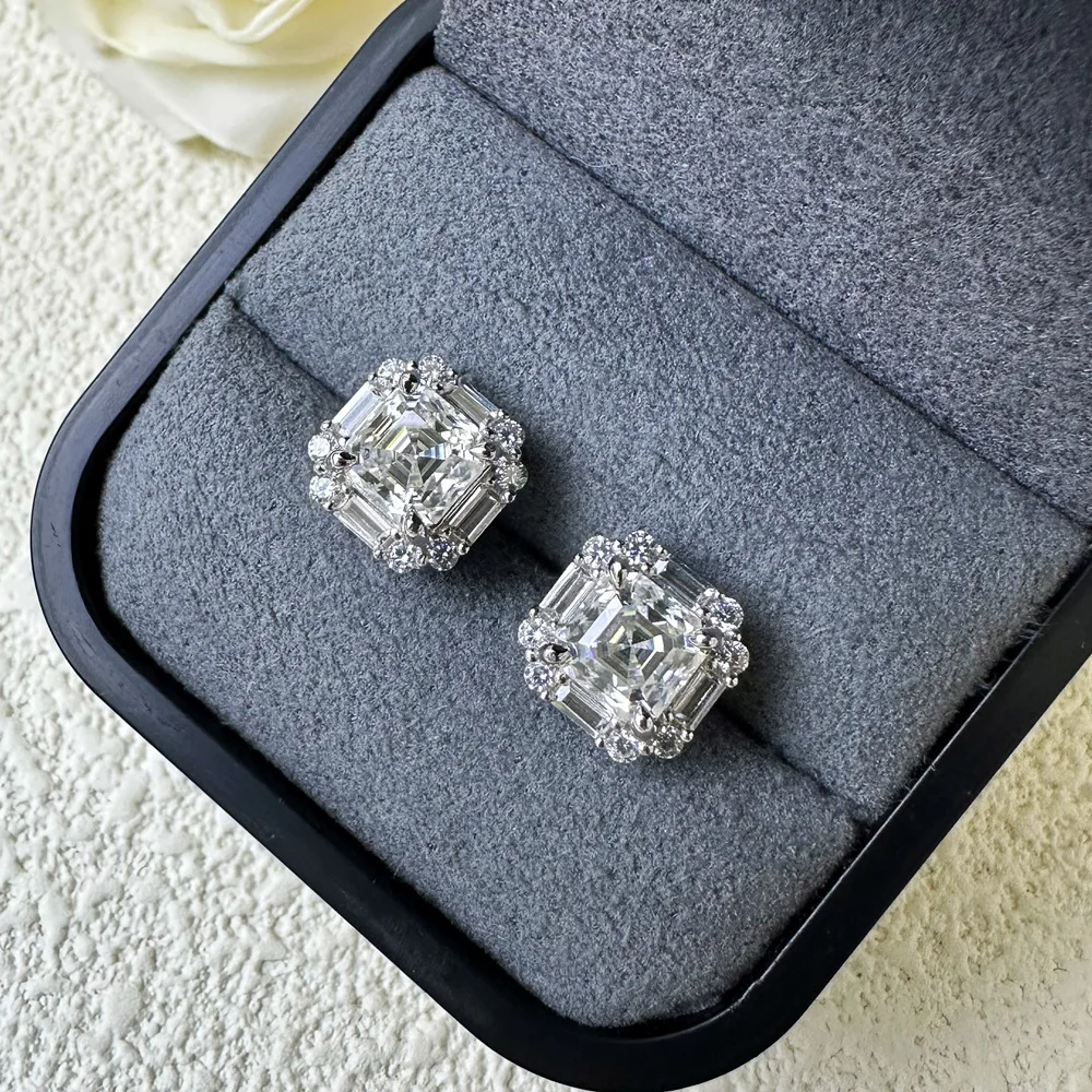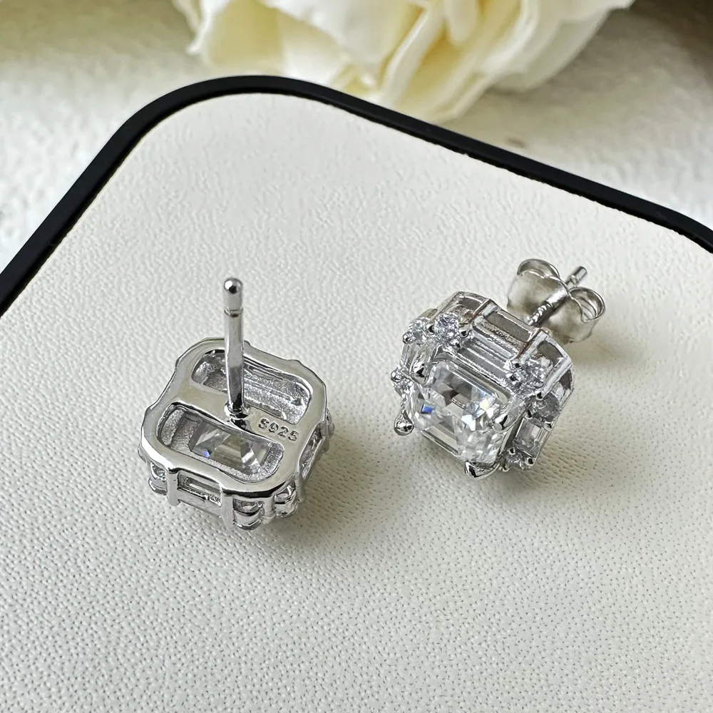 1 Carat 6*6mm square Asscher Zircon Earrings for Women S925 Sterling Silver Earrings Live Hot Selling Fashion Jewelry