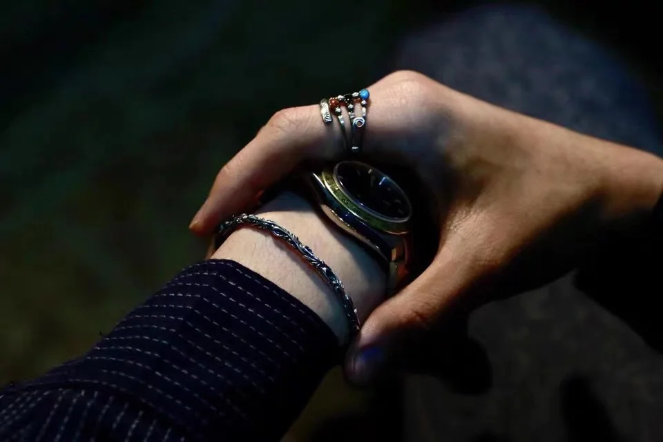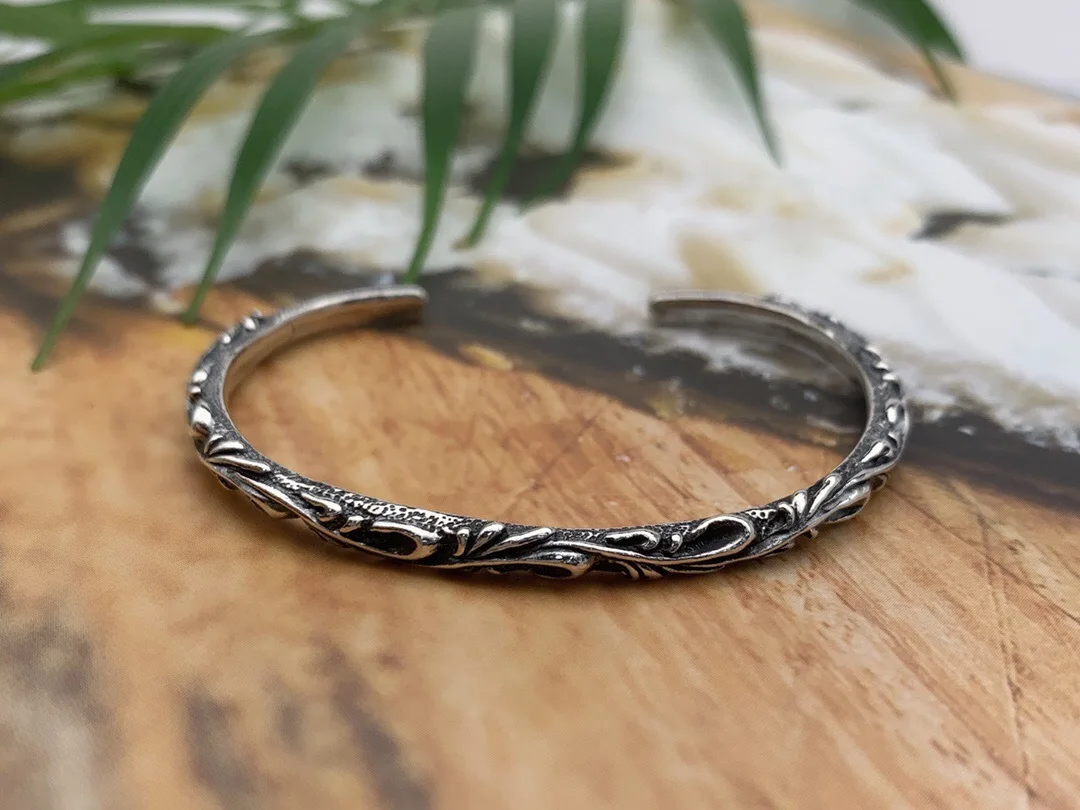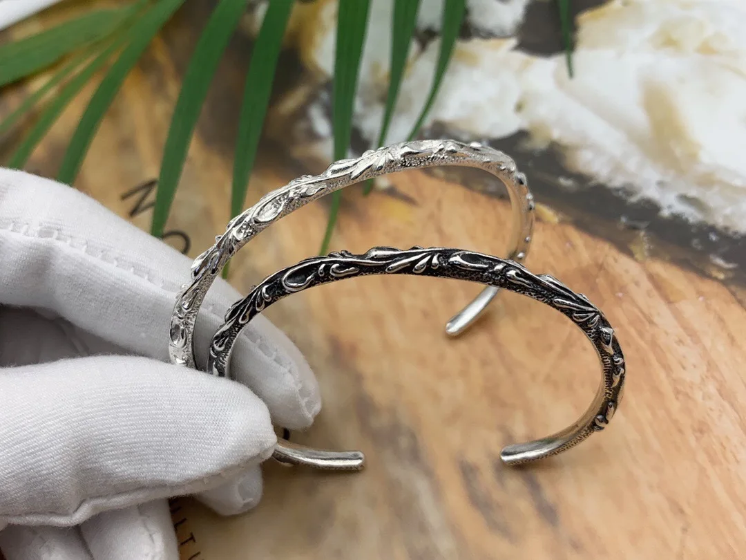 S925 Silver Men and Women's Vine Pattern Retro Open Thai Silver Bracelet Cross Flower Cross Silver Bracelet