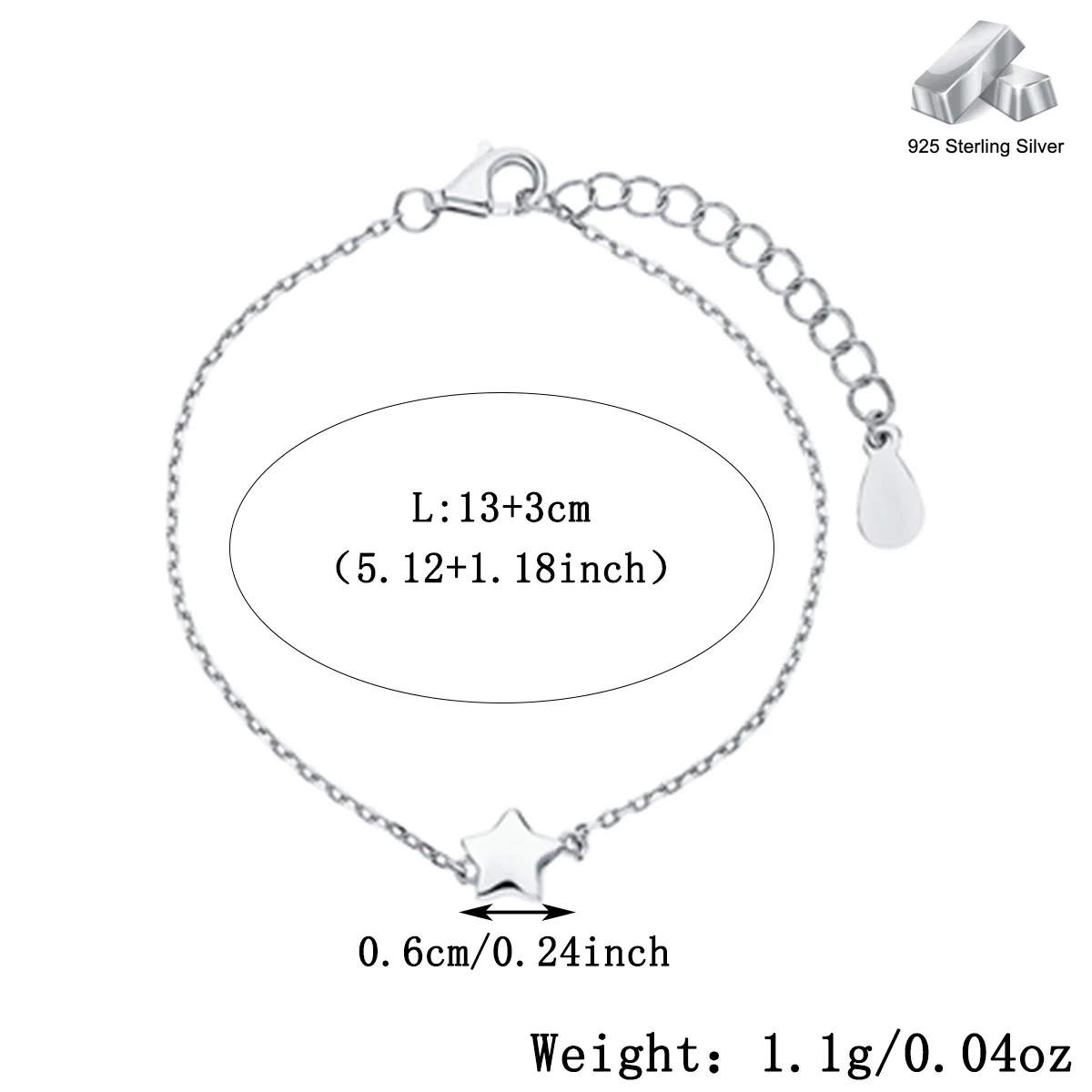 Wholesale 925 Sterling Silver Link Chain Bracelet Women's Star Charm Jewelry for Gift