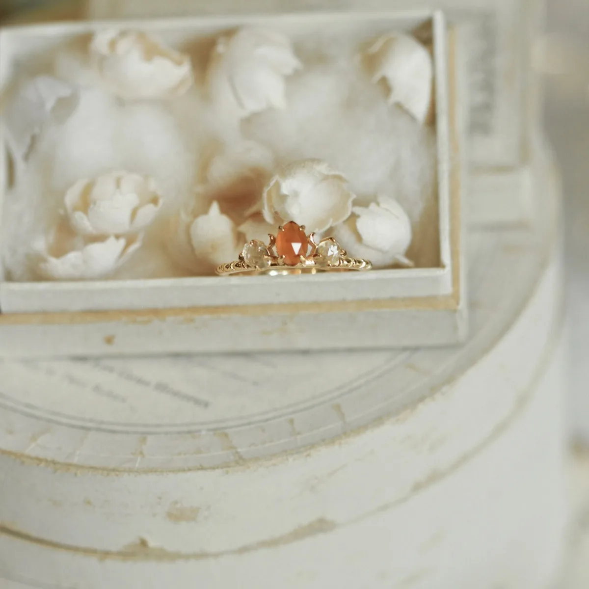 Vintage 18K Gold Plated Copper Natural Orange Garnet Retro Exquisite Ring Pendant Jewelry Set