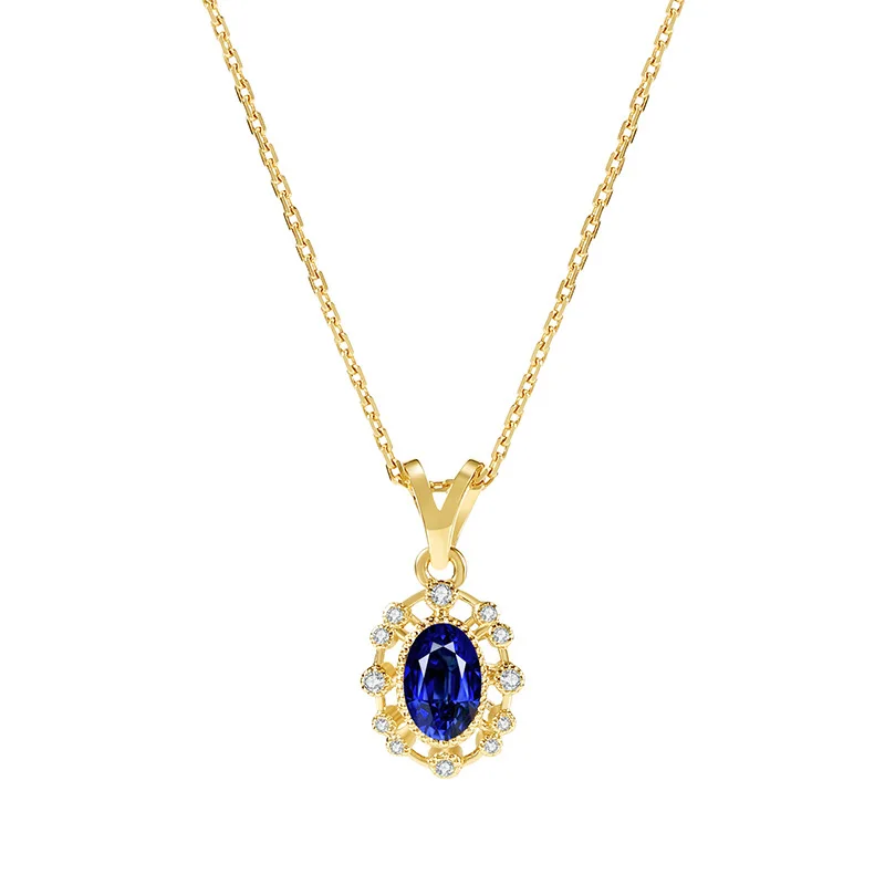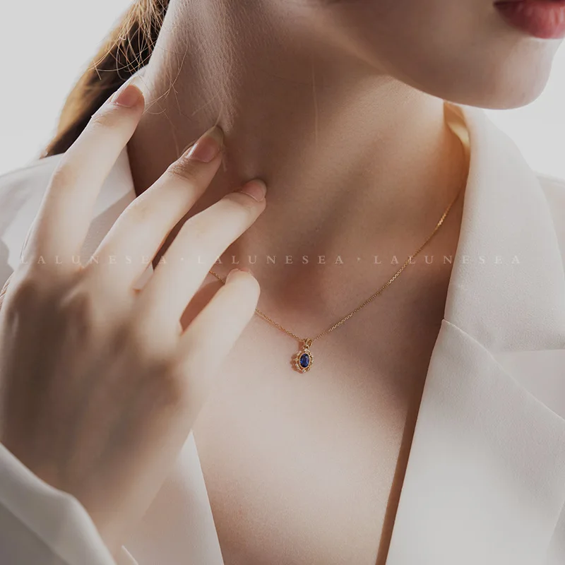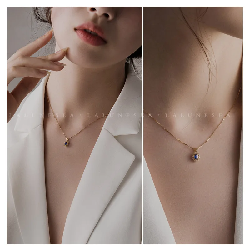 S925 Sterling Silver 18K Gold Plated Necklace with Blue Zircon Luxurious and Uniquely Beautiful Necklace Pendant Jewelry
