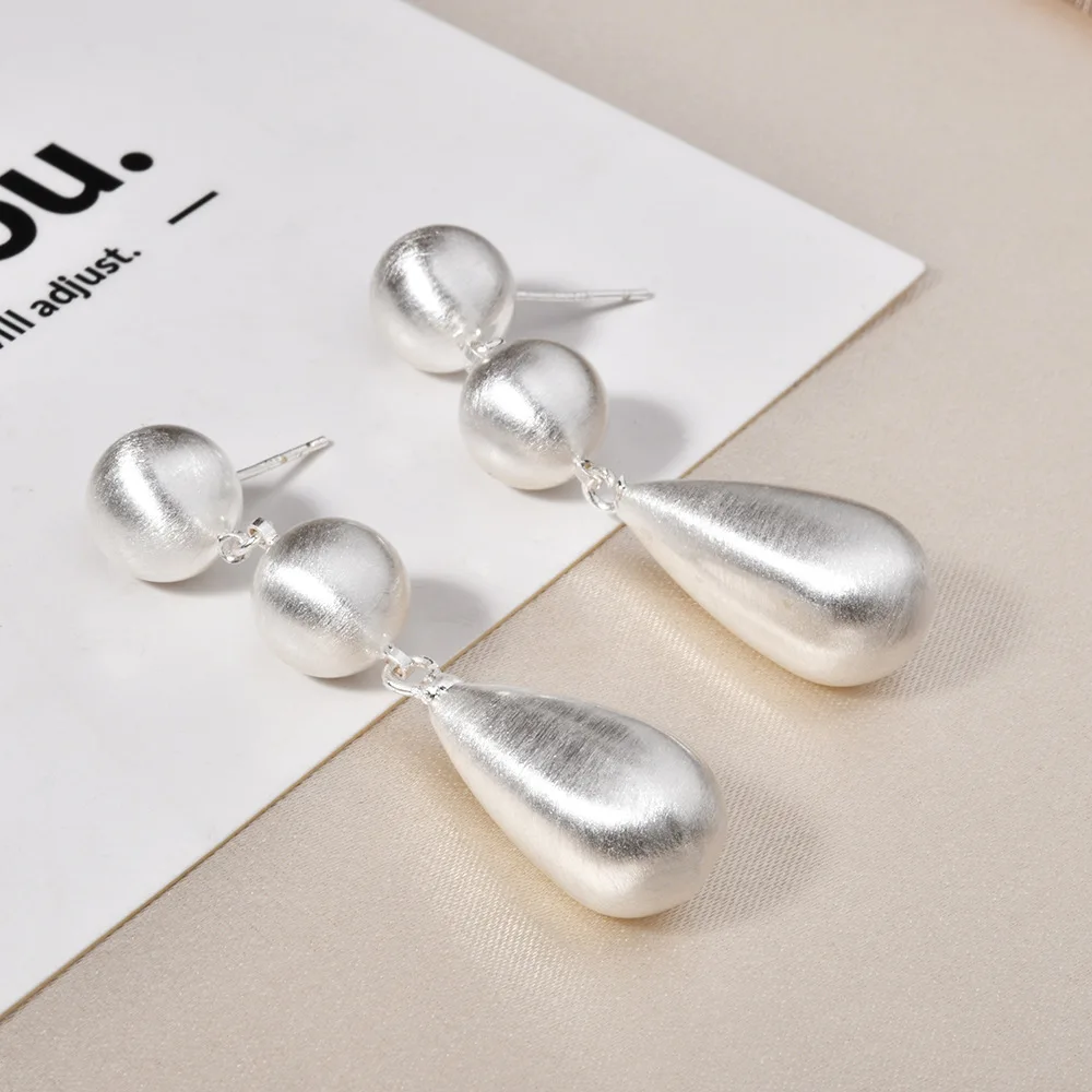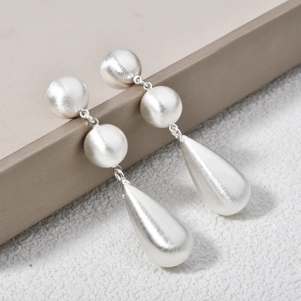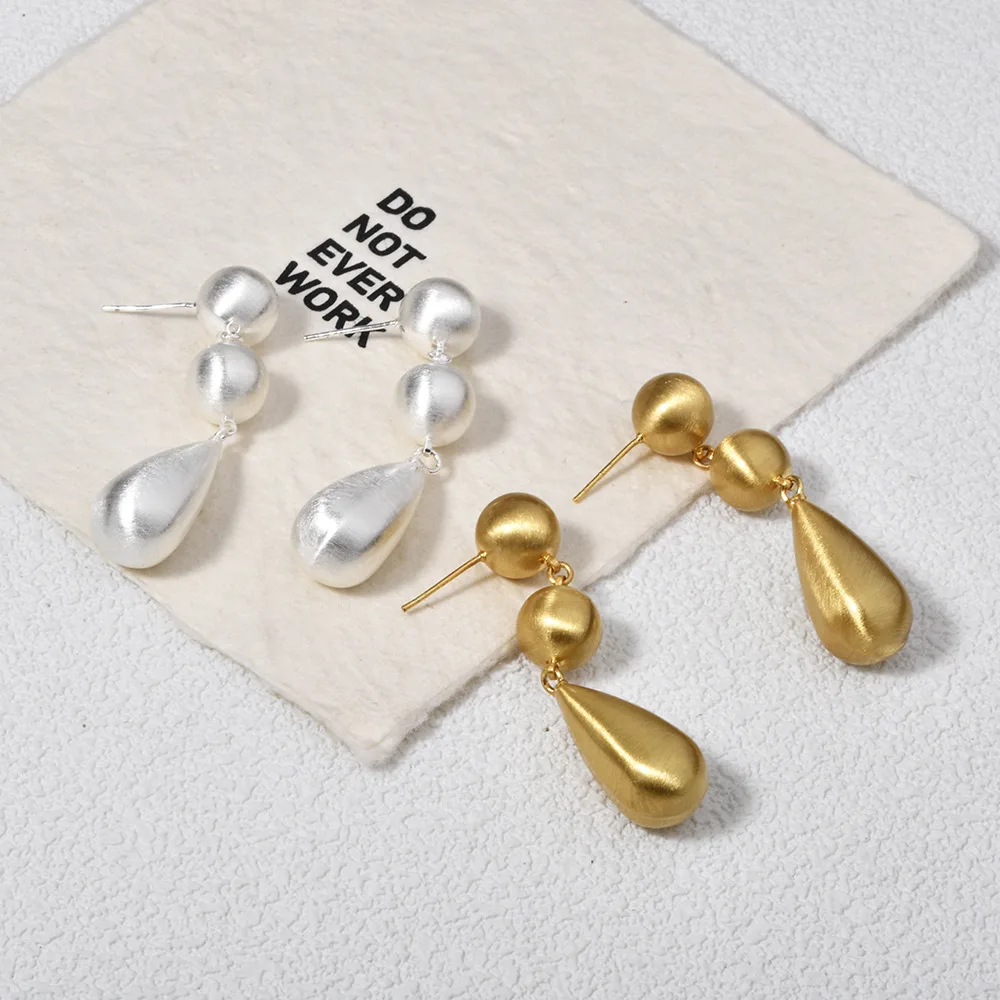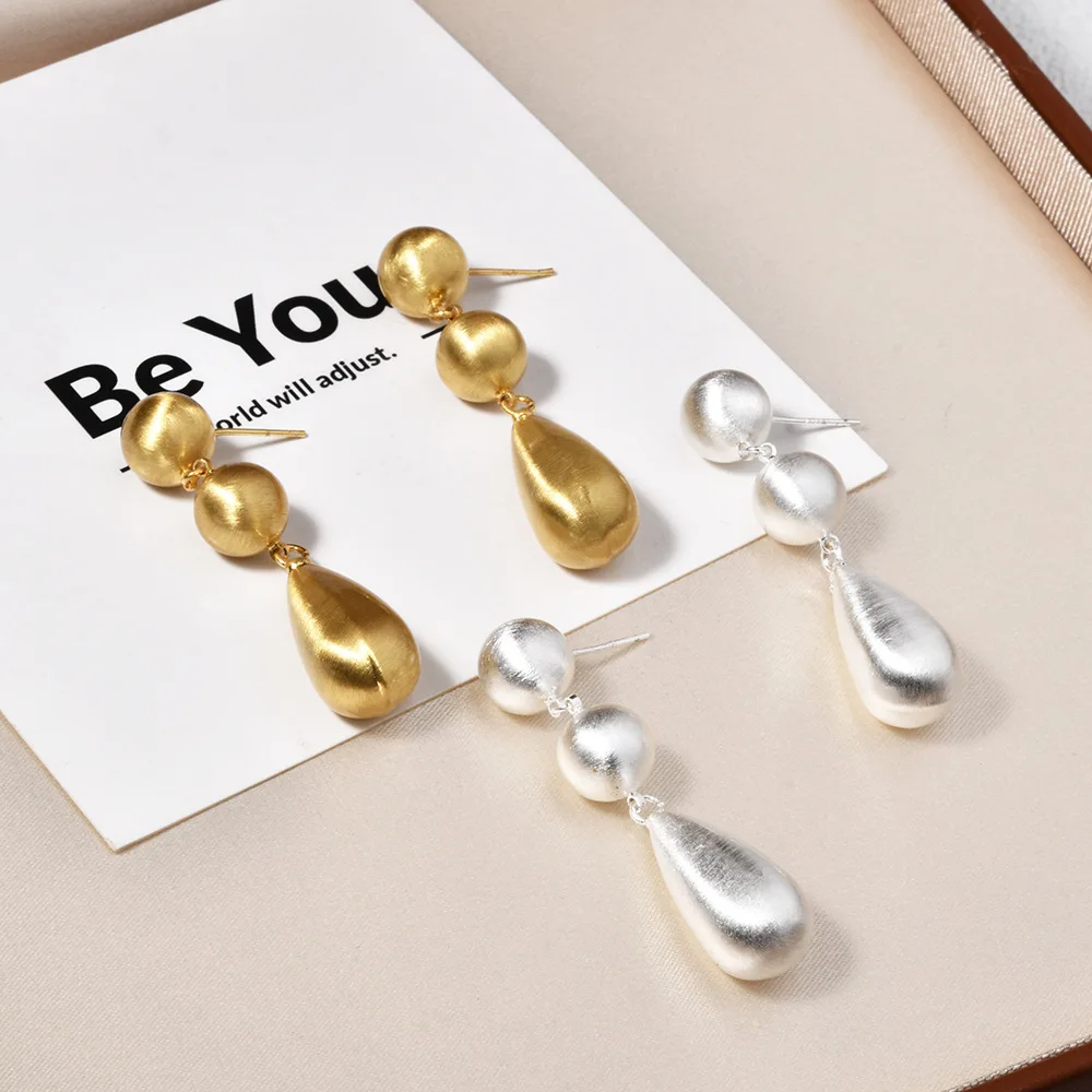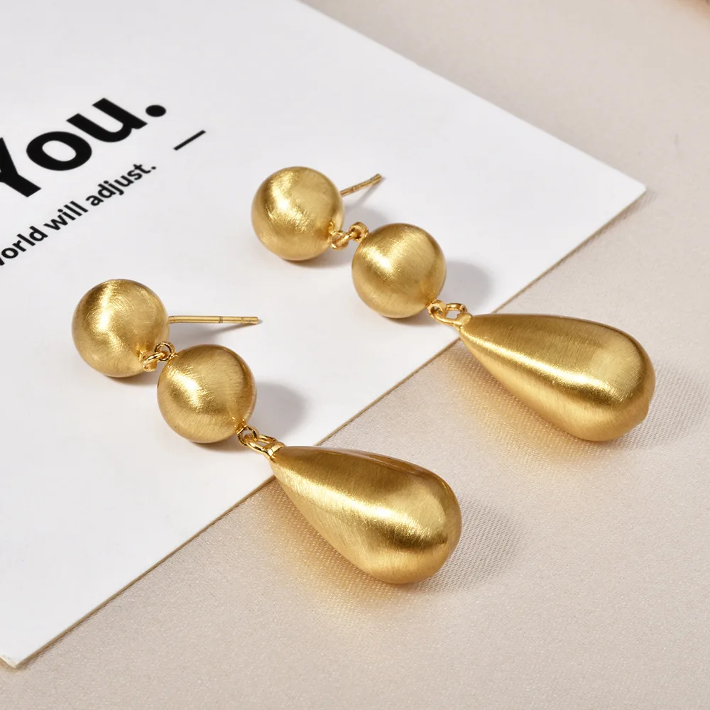 Retro-style Thick Electroplated Round Bead Brushed Teardrop Earrings with Exaggerated and Unique Design