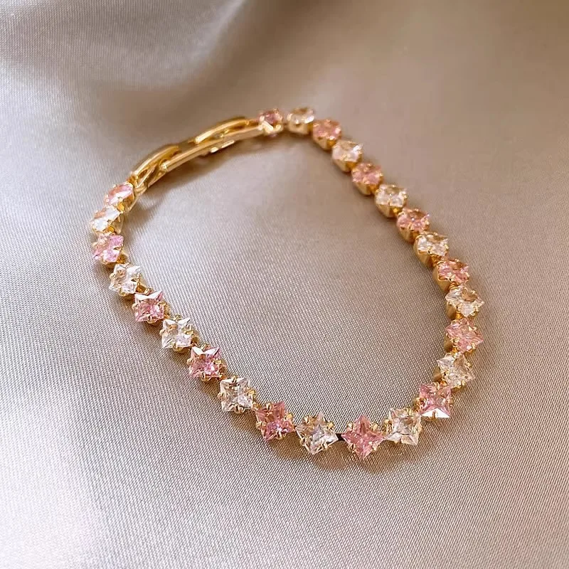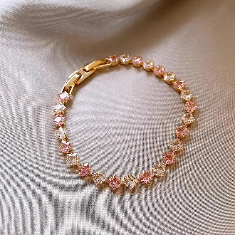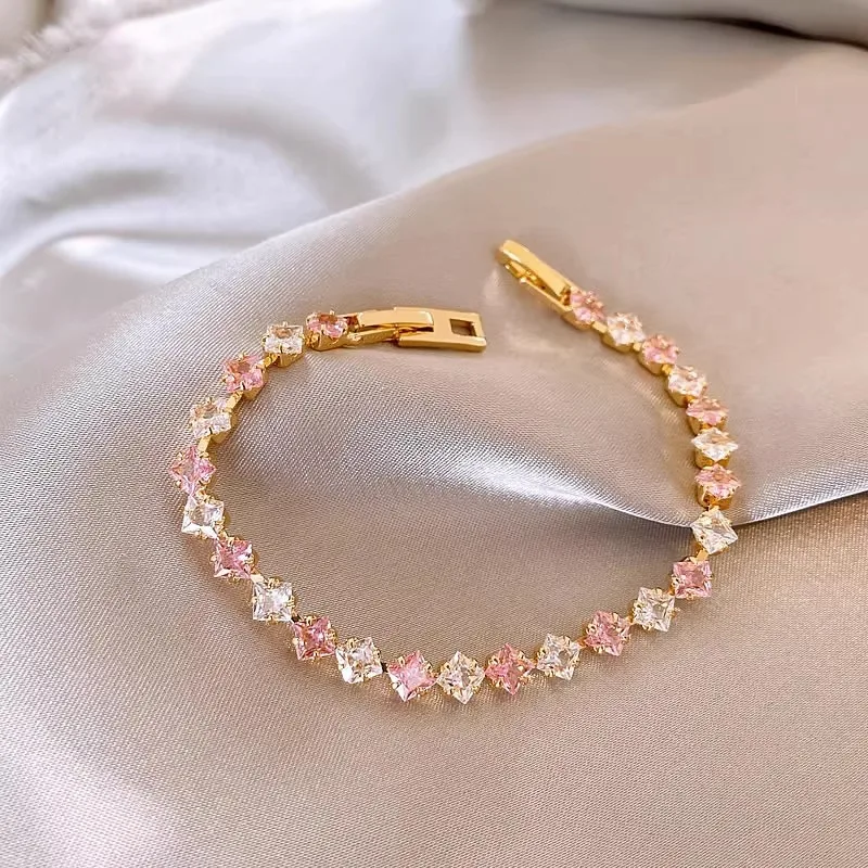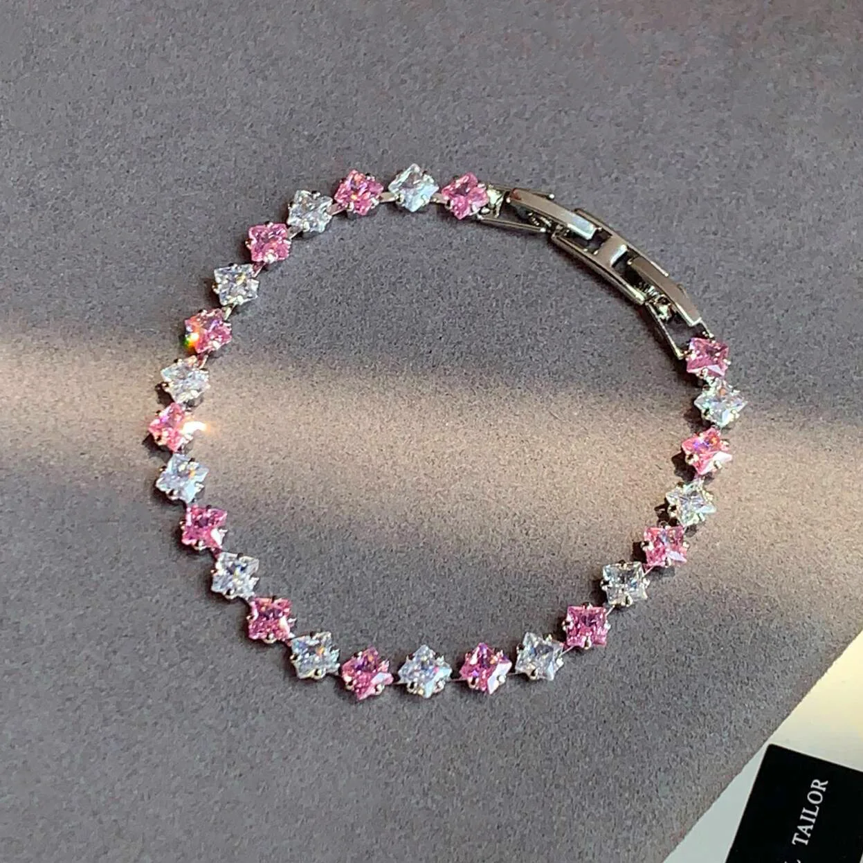 Sparkling and Sweet pink Zircon Bracelet for Women Shinny Birthday Gift Bracelet Jewelry