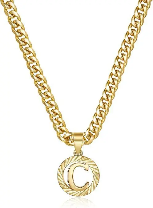 Hollow Out 26-letter Gold Letter Simple Collarbone Necklace for Women and Men Cuban Chain Christmas Gift Jewelry
