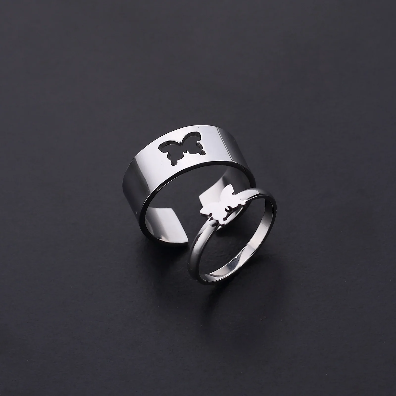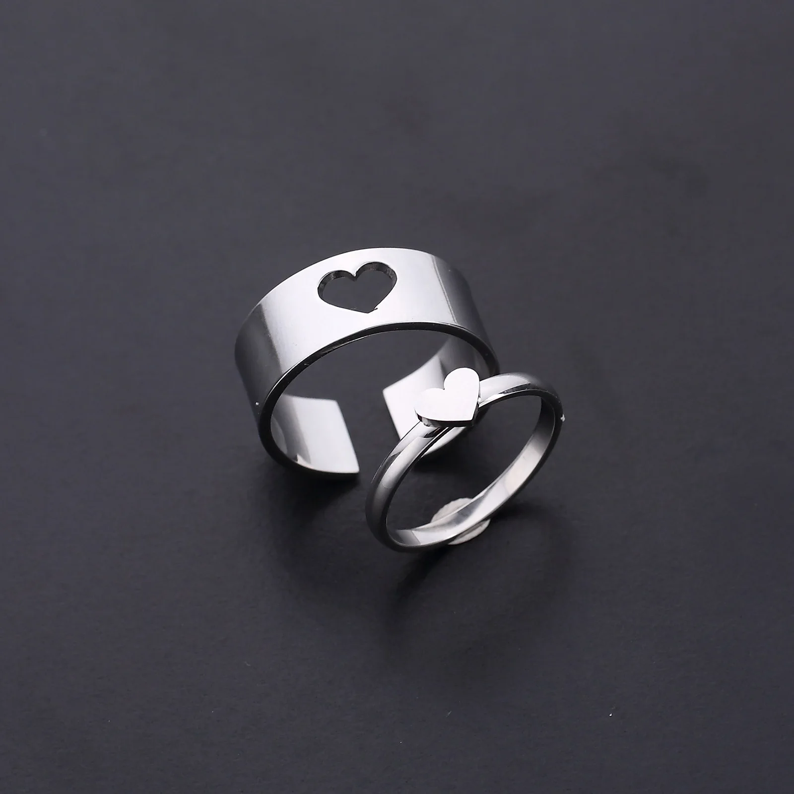 Loftily Love Stainless Steel Gold Plated Open Heart Couple Ring Classic Wedding Engagement Anniversary Gift Jewelry