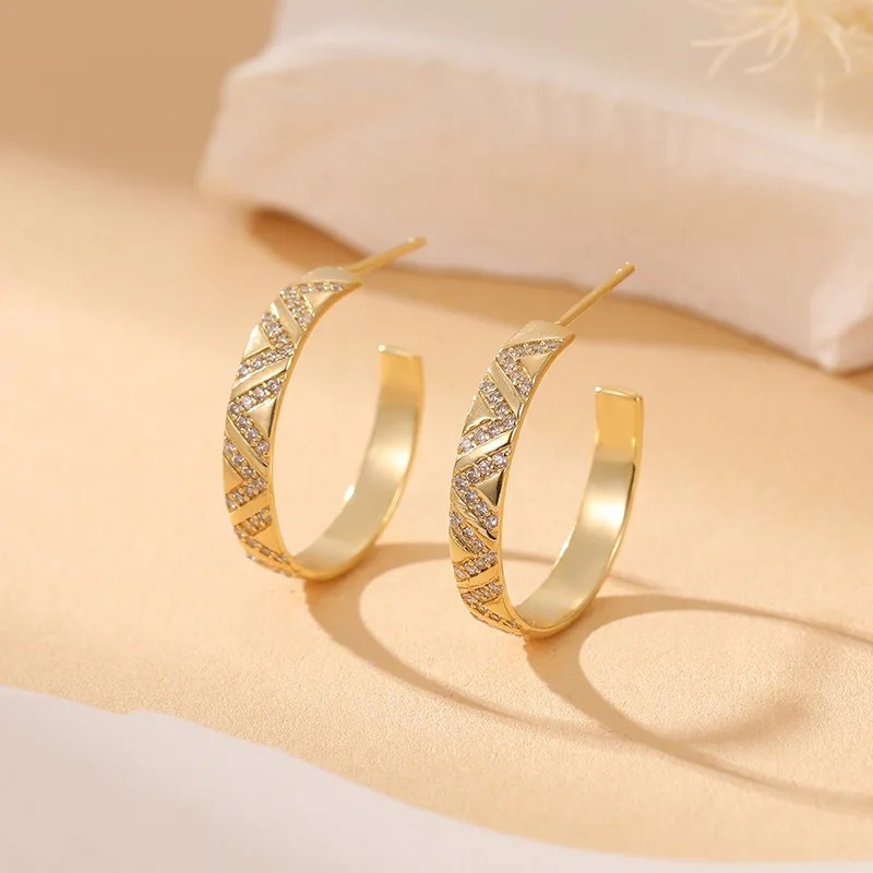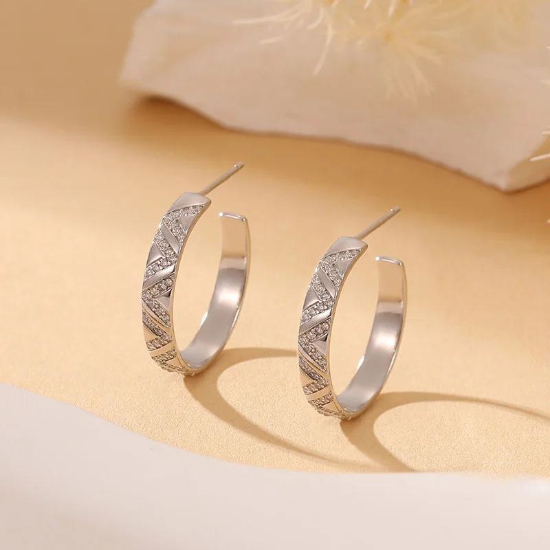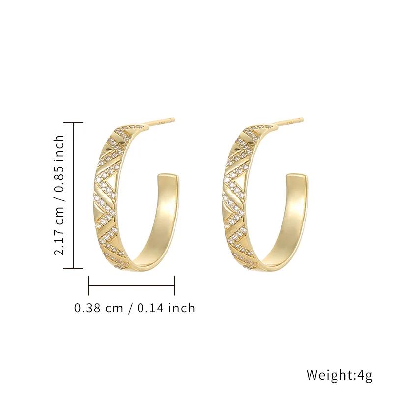 Loftily Women's Vintage 18K Gold & Rhodium Plated C Cuff Earrings with Zircon Stone Made From Sterling Silver for Weddings