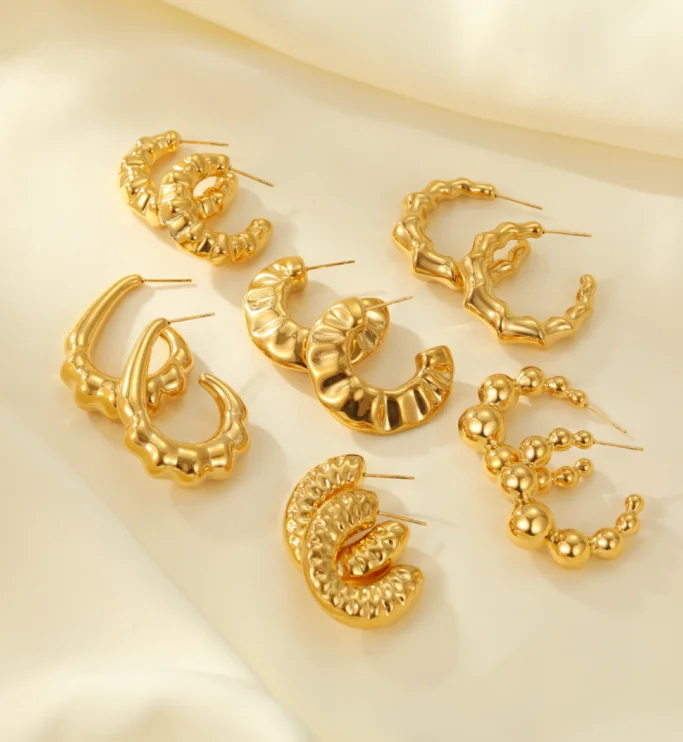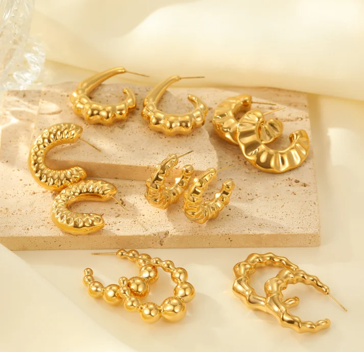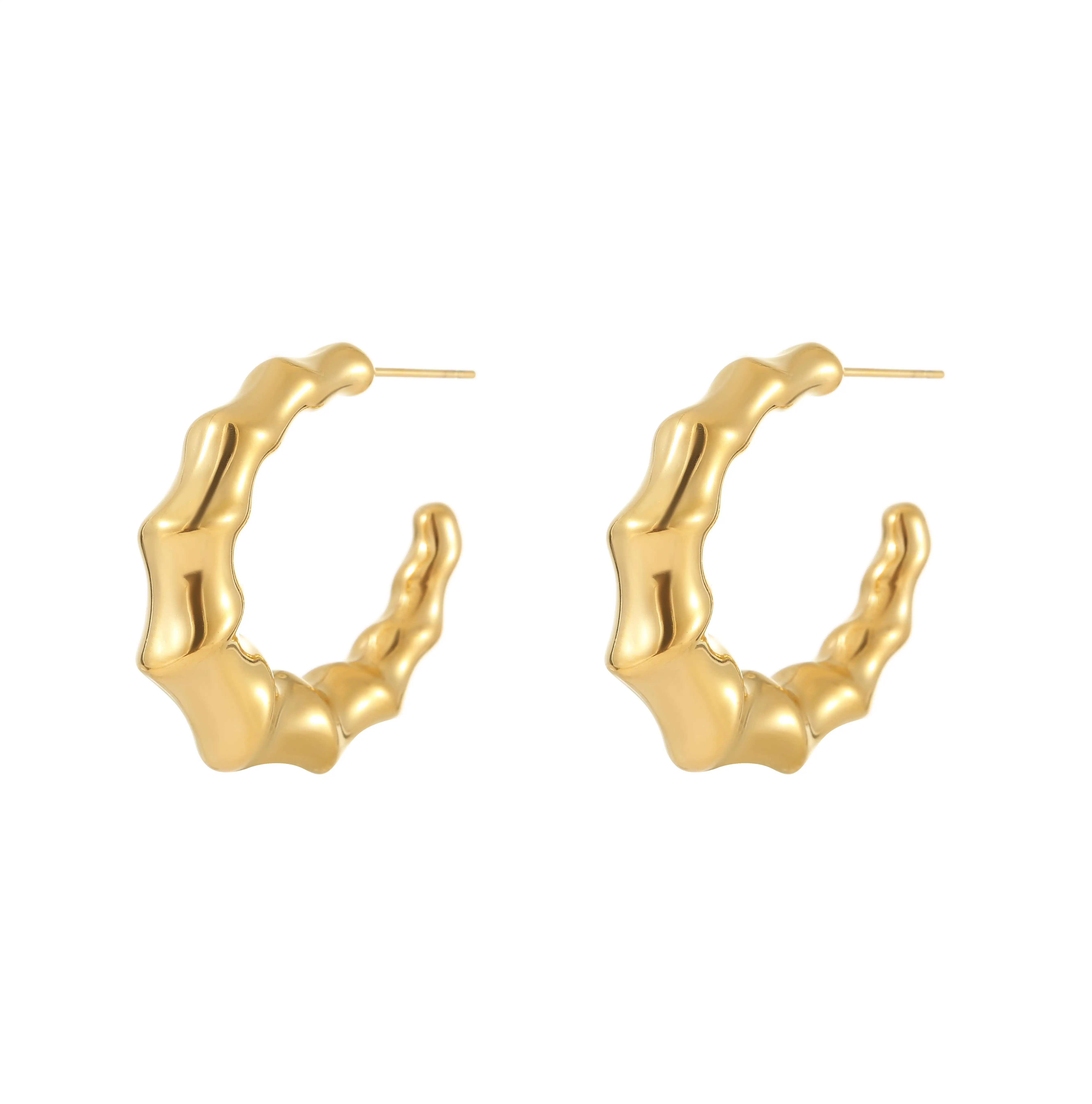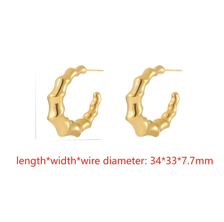 18K Gold Plated Stainless Steel Hollow Light Earrings Trendy Bamboo Stud Waterproof Jewelry for Engagement