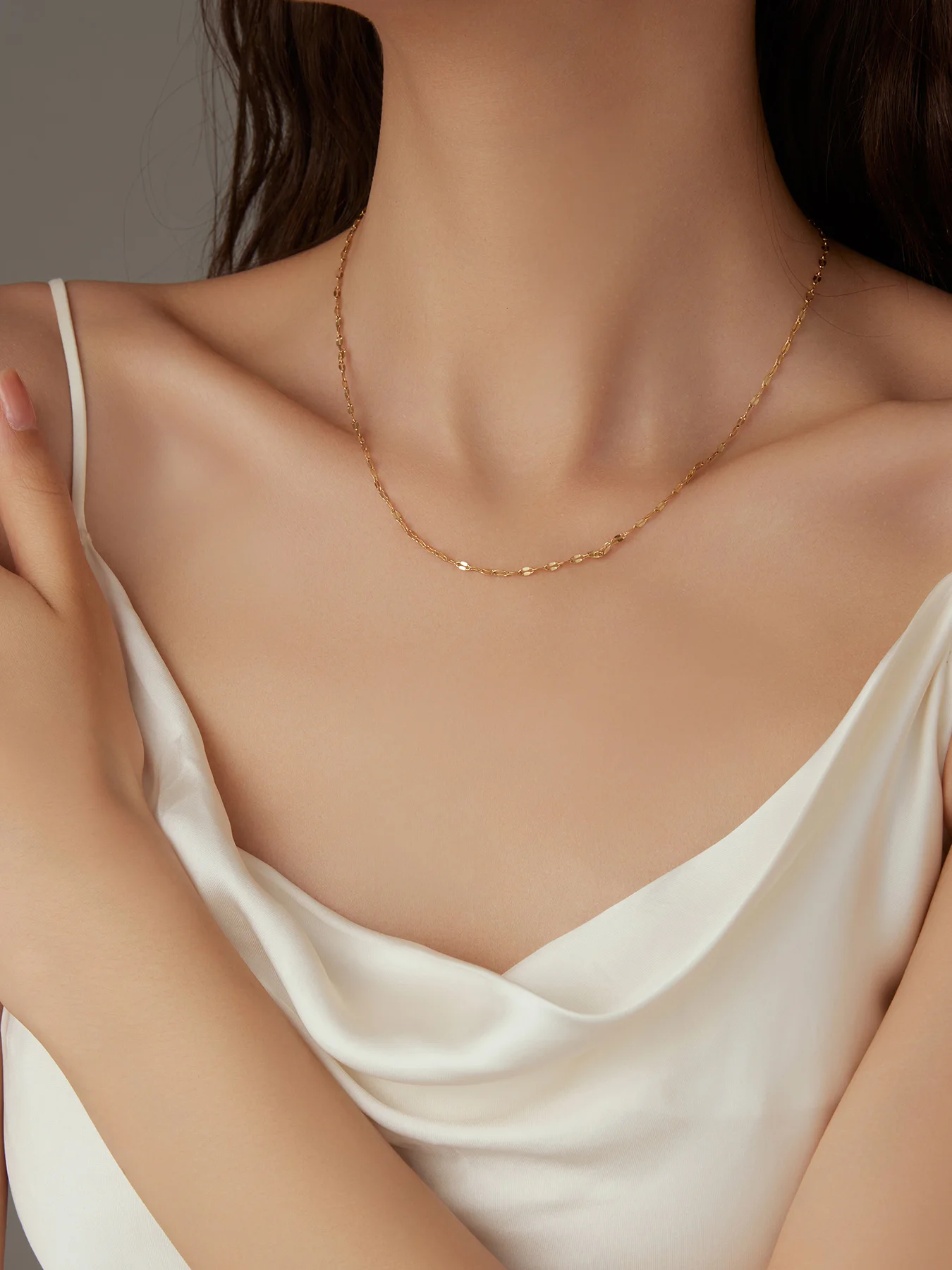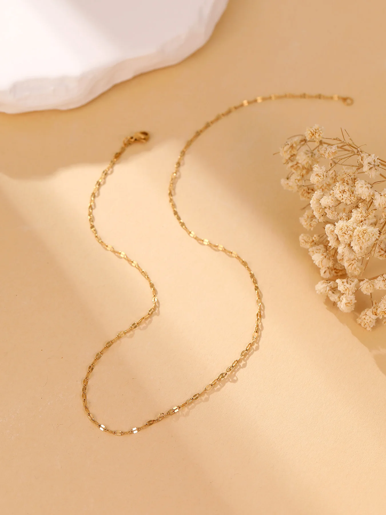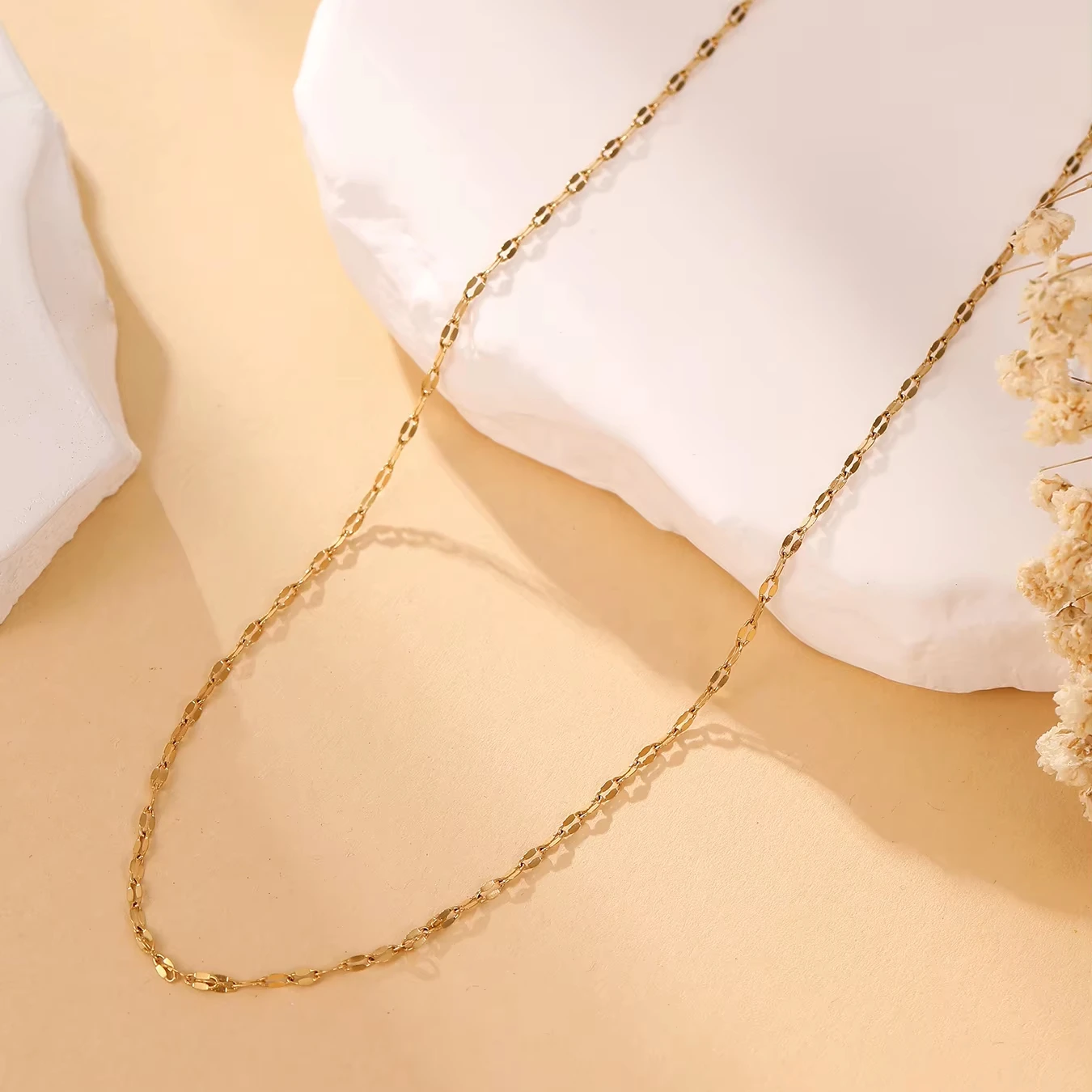 Minimalist 18K Gold Plated Link Chain Necklace Simple Dainty Glitter for Women Fine Jewelry Gift Idea