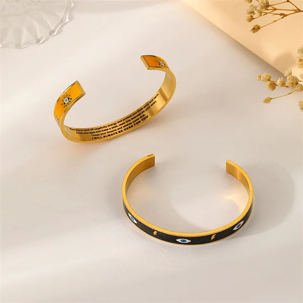 Wholesale Emaille Bijoux Adjustable Custom Colorful Charm Cuff Bracelets Stainless Steel Enamel Cuff Bangle Jewelry