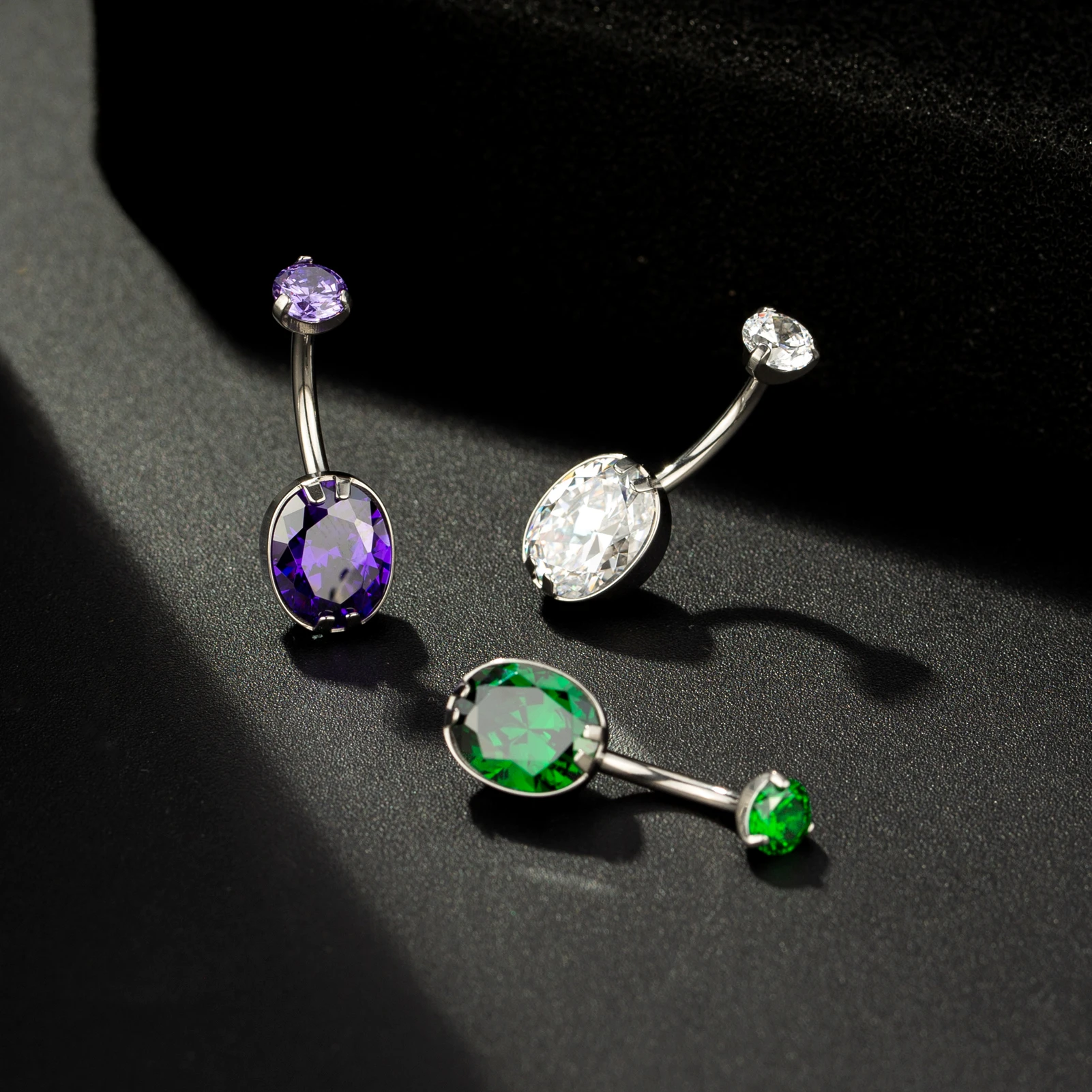 Body Piercing Jewelry ASTM F136 Titanium Colorful Double CZ Gem Navel Belly Button Ring Bar Women