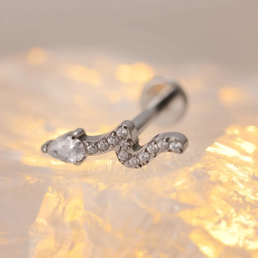 Custom Gold Plated Titanium Jewelry for Children Titanium Zircon Stones Body Piercing Eyebrow Stud/Earrings-No Fade F136