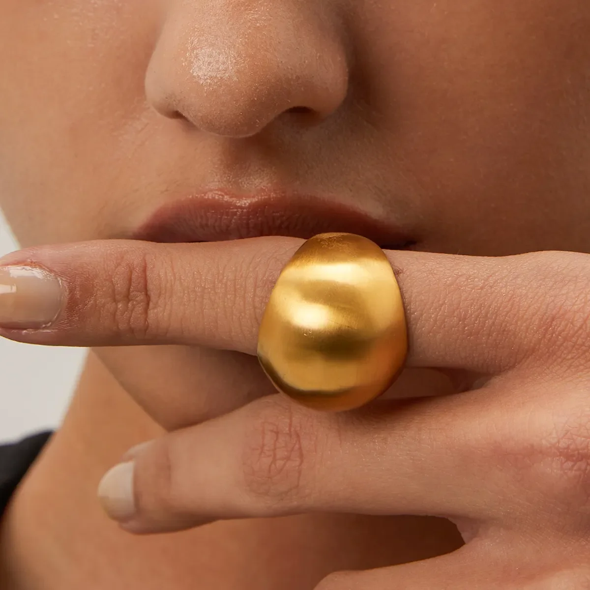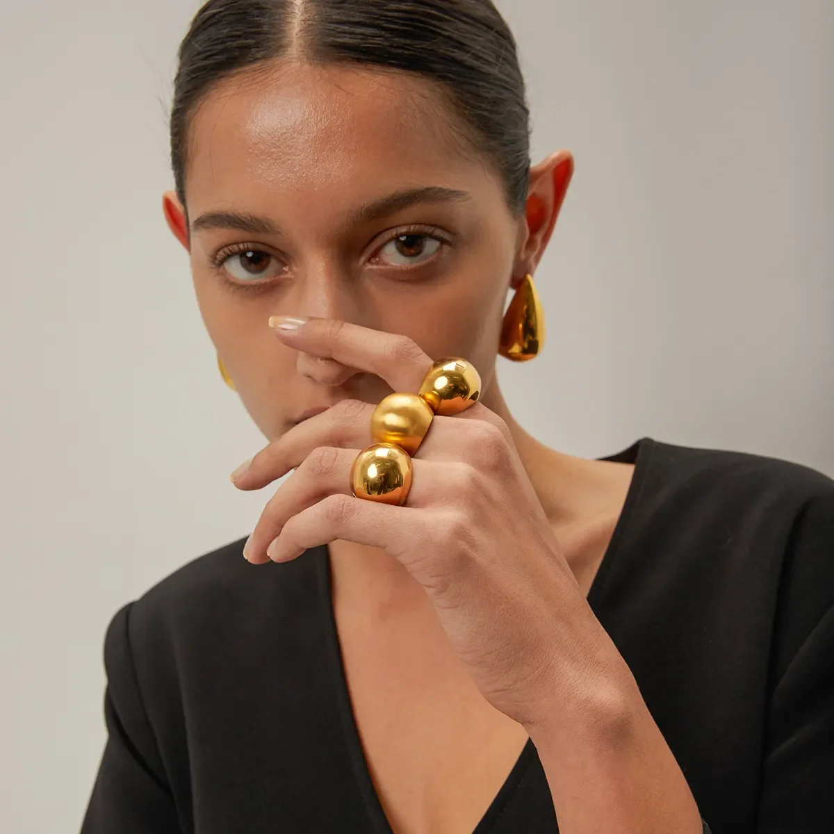 Stainless Steel Rings for Women Statement Rings 18K Gold Plated High Polished Large Teardrop Rings