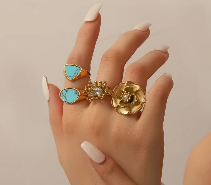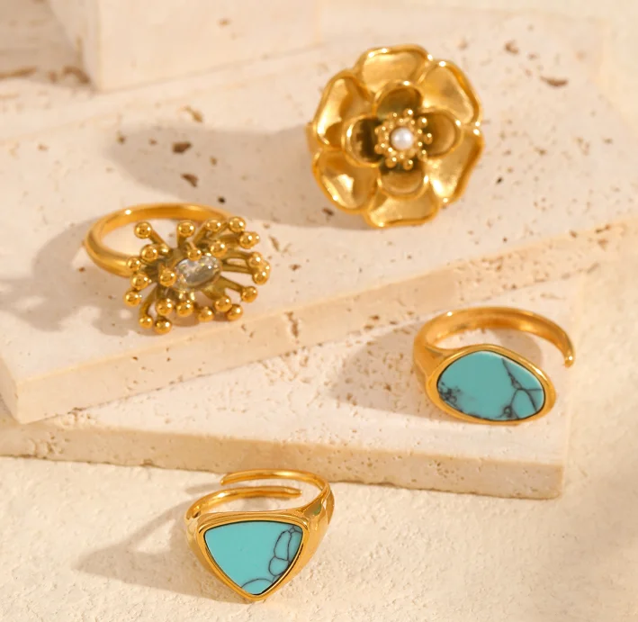 Ocean Style Waterproof Stainless Steel Jewelry 18K Gold Plating Stainless Steel Fashion Finger Jewelry for Women