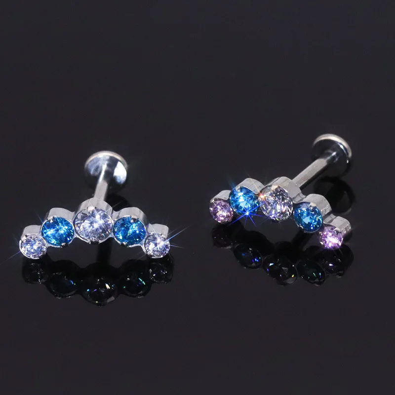 Wholesale Titanium Body Jewelry 5 Different Colors CZ Stones F136 Titanium Labret Stud Piercing No-Fade