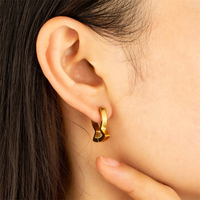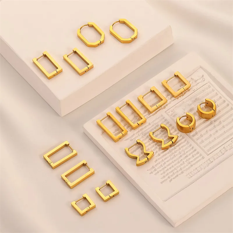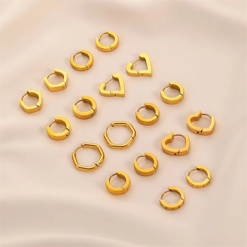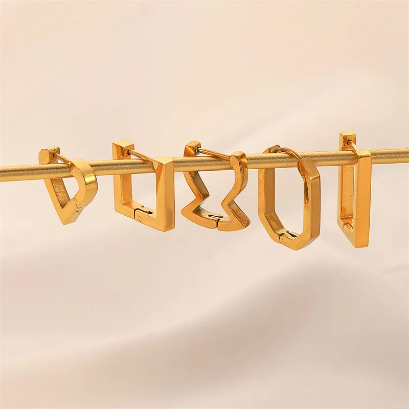 2023 18K Gold Plated Stainless Steel Fashion Jewelry Peach Heart Polygon Steel Hook Earrings