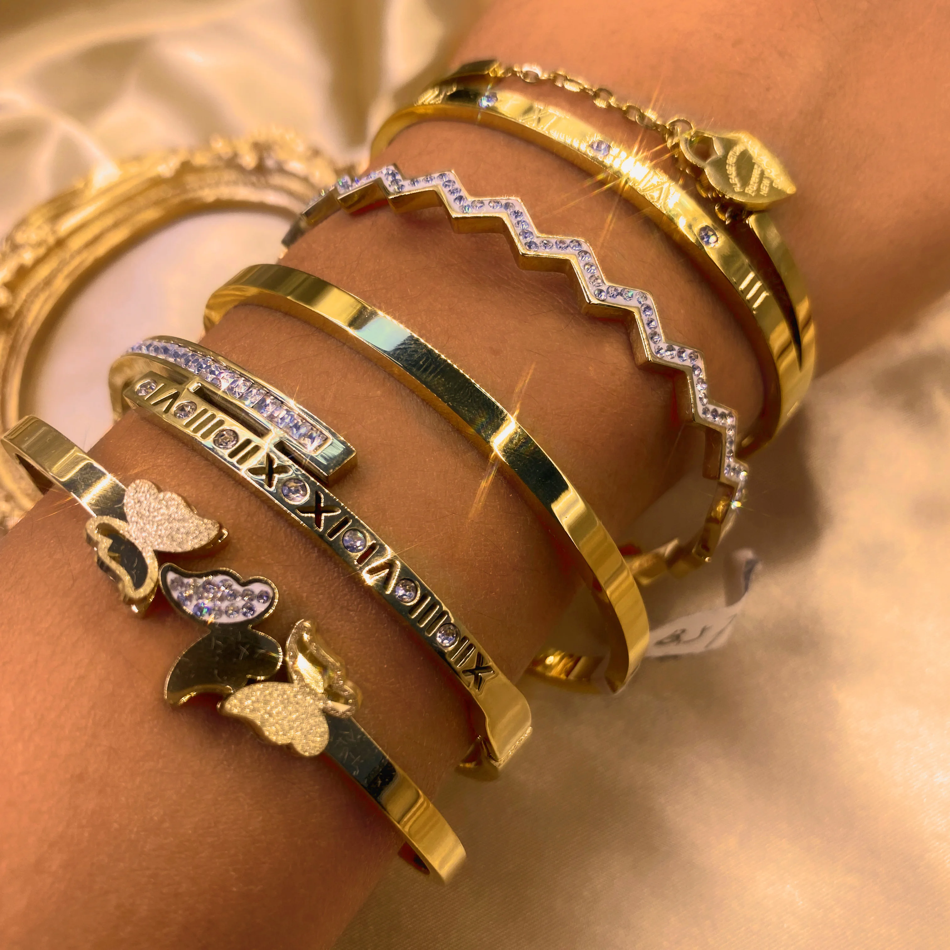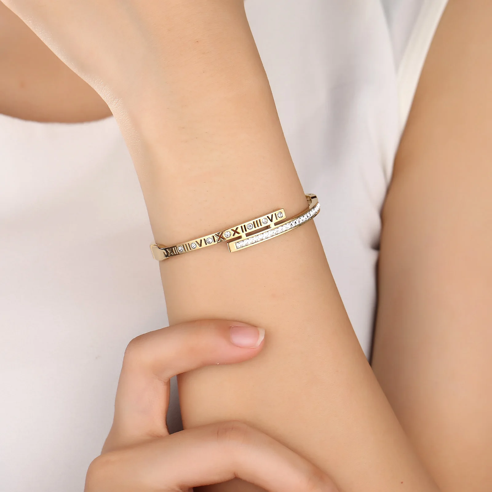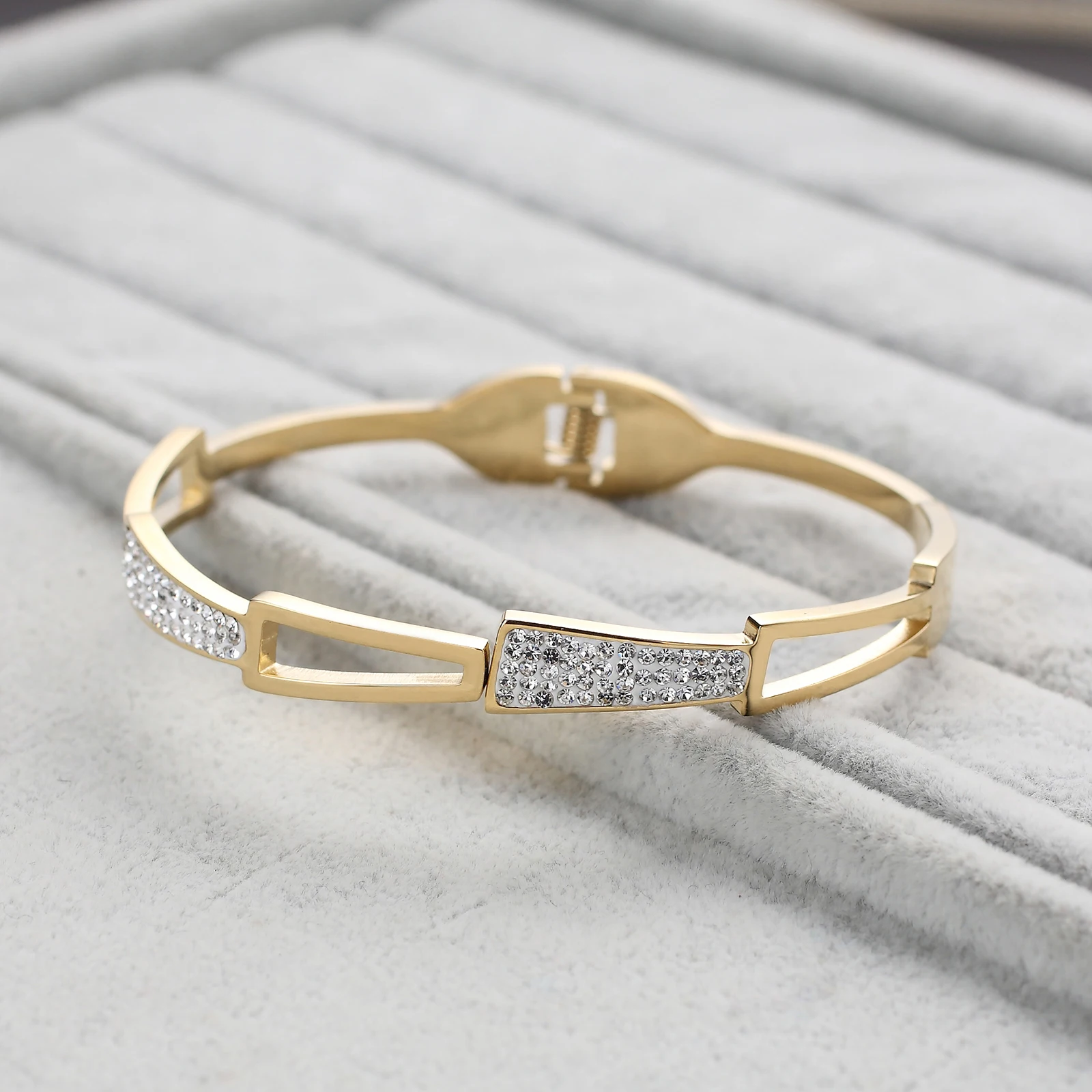 Luxury Tarnish Jewelry 18k Gold Plated Zirconia Stainless Steel Charm Bracelets & Bangles